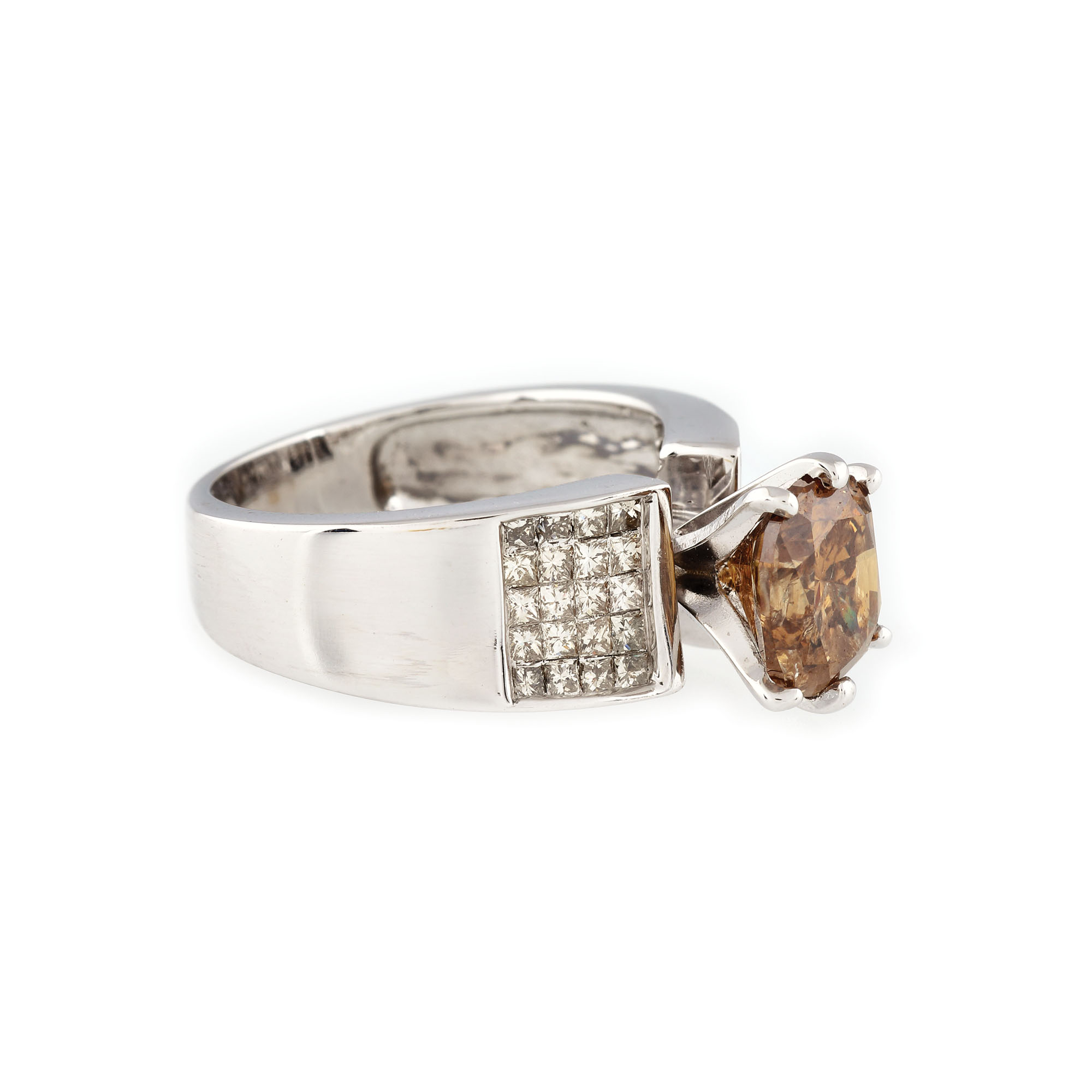 50. Inel din aur alb, decorat cu diamant brun și pavaj de diamante albe