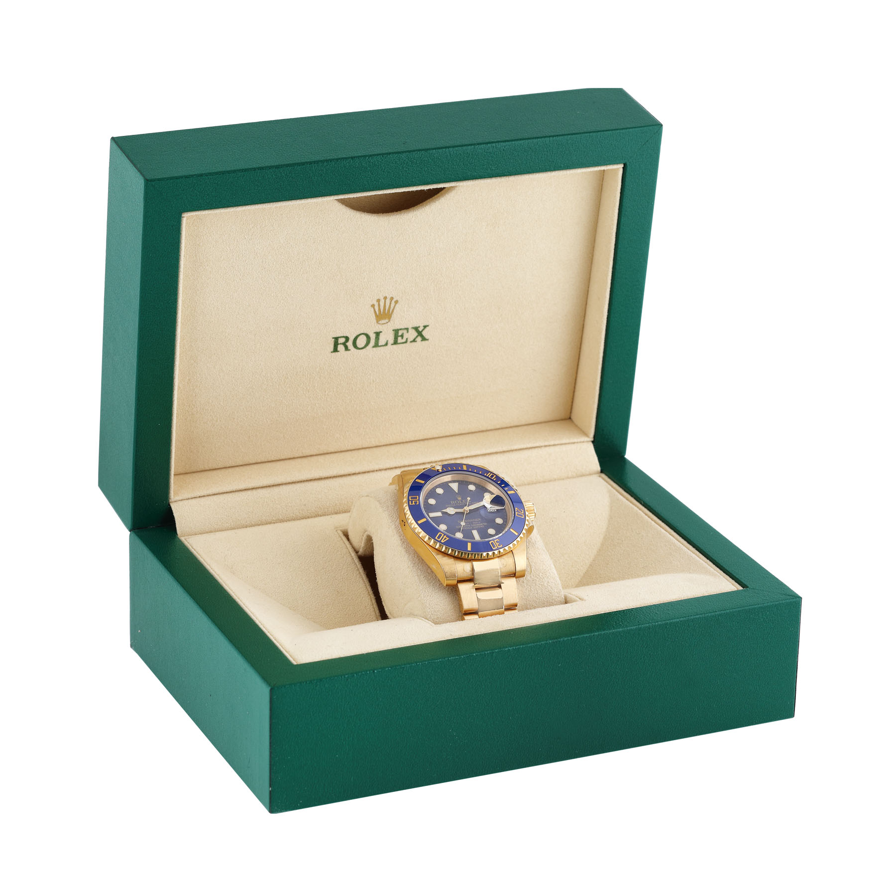 71. Ceas Rolex Oyster Perpetual Submariner Date din aur, de mână, unisex, vine însoțit de actele de proveniență și cutia originală [2016]
