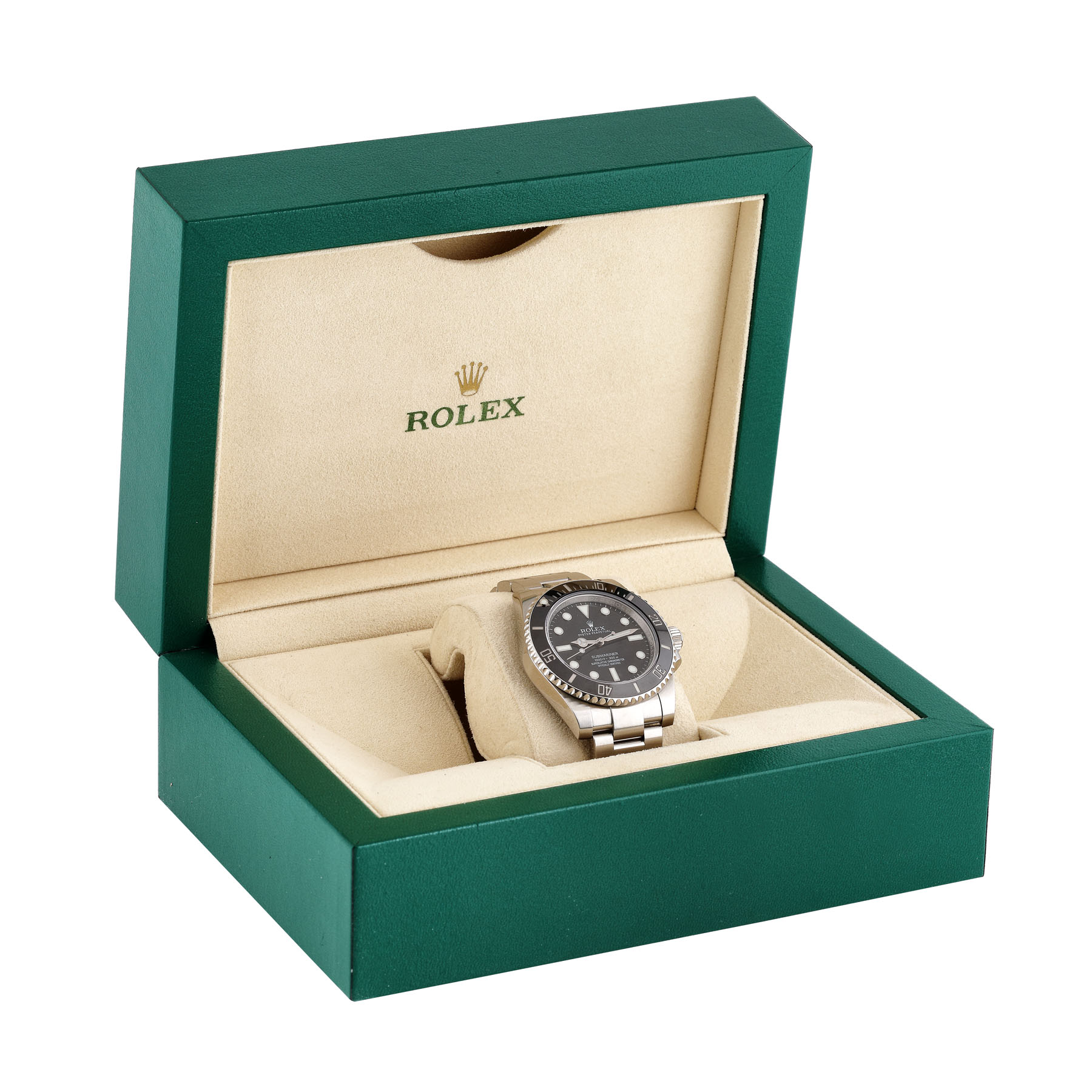 Ceas Rolex Oyster Perpetual Submariner, de mână, bărbătesc, cu referință 114060, mecanism automatic, calibru 3130 și rezervă de timp de 48 h. Cadran negru, cu marcaje luminiscente. Bezel ceramic, negru, gravat cu numerale arabe, rotativ unidirecțional. Ceasul vine însoțit de cardul de garanție și cutia originală. Datorită cererii în continuă ascensiune pentru acest model, lista de așteptare a fost închisă. Modelul Rolex Submariner fără afișaj pentru dată, a fost produs într-un tiraj mult mai mic decât cel ce include dată, astfel încât crește potențialul acestuia de a deveni un bun de colecție. Modelul Rolex Submariner este unul dintre modele preferate ale sportivului Diego Maradona.