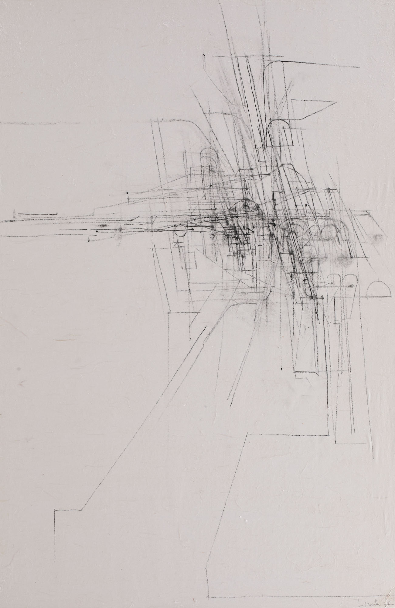 cărbune pe hârtie lipită pe carton