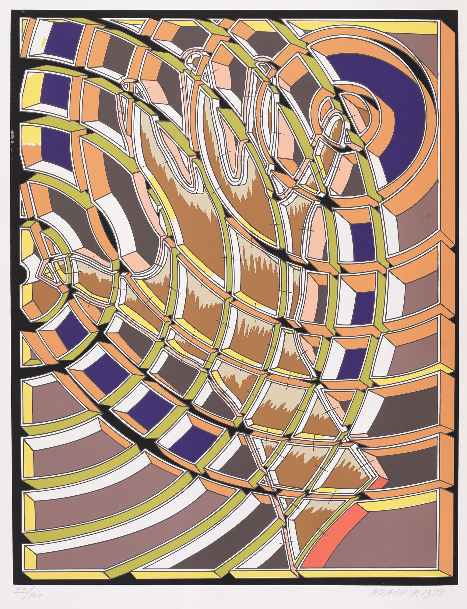 semnat și datat dreapta jos, în creion, "Neagu P., 1974"; numerotat stânga jos, în creion, "22/100"