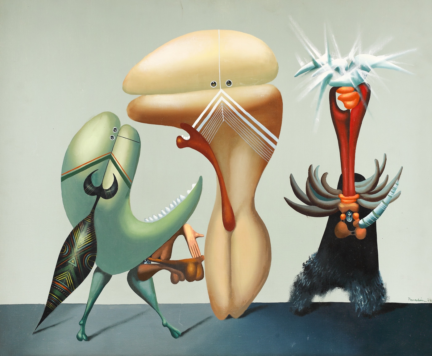 Începându-și cariera de timpuriu, Jules Perahim se avânta în perioada anilor interbelici într-o adevărată aventură, devenind unul din principalele figuri ale avangardismului românesc de manieră suprarealistă. Noua abordare se adresa spontanului, care pornea neașteptat, având în substrat premiza renunțării la orice îngrădire sau dogmă ce putea interveni asupra liberei creații. Primele expoziții le va sustine în țară, urmând expozițiile internaționale de la Praga, Paris, Geneva, Basel, Montreal, Ierusalim, Chicago sau New York, locuri unde Perahim avea să se facă cunoscut prin suprarealismul său. Cronicile, precum și dicționarele de specialitate îl vor aminti începând cu anul 1959 ca un important reprezentant al artei suprarealiste („Histoire de la peinture surrealiste”, Marcel Jean), consacrându-i un loc de seamă. Odată cu emigrarea sa în Franța, din anul 1969, artistul se va dedica unui suprarealism de ordin mistic, fantastic, abstract, uneori liric, elaborându-și compozițiile în jurul conceptului metafizic. Întoarcerea sa decisivă spre pictură, spre formele de expresie inovatoare aveau să îl convertească într-un exponent din ce în ce mai original. Anul 1974 îl va regăsi pe Perahim lucrând la albumul „L’alphabet”, prefațat de Marina Vanci și editat la Paris, de Galeria „Mony Calatchi”, pentru care va realiza 22 de litografii. De asemenea, va realiza decoruri pentru piesa de teatru „Farce du Maître Pathelin”, în regia lui David Esrig, susținută la Teatrul de Cameră din Bremen (Germania). Tot în acest an va participa și la Expoziția „Phase” de la Muzeul din Ixelles din Bruxelles, pentru care va realiza afișul expoziției. (G.M.)