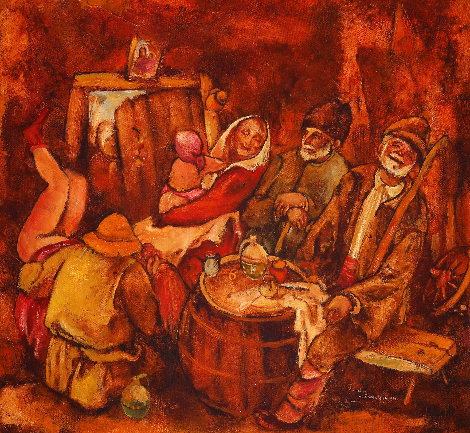 semnat și datat dreapta jos, prin zgrafiere, "făcut de Vrăneanțu, (1)972"