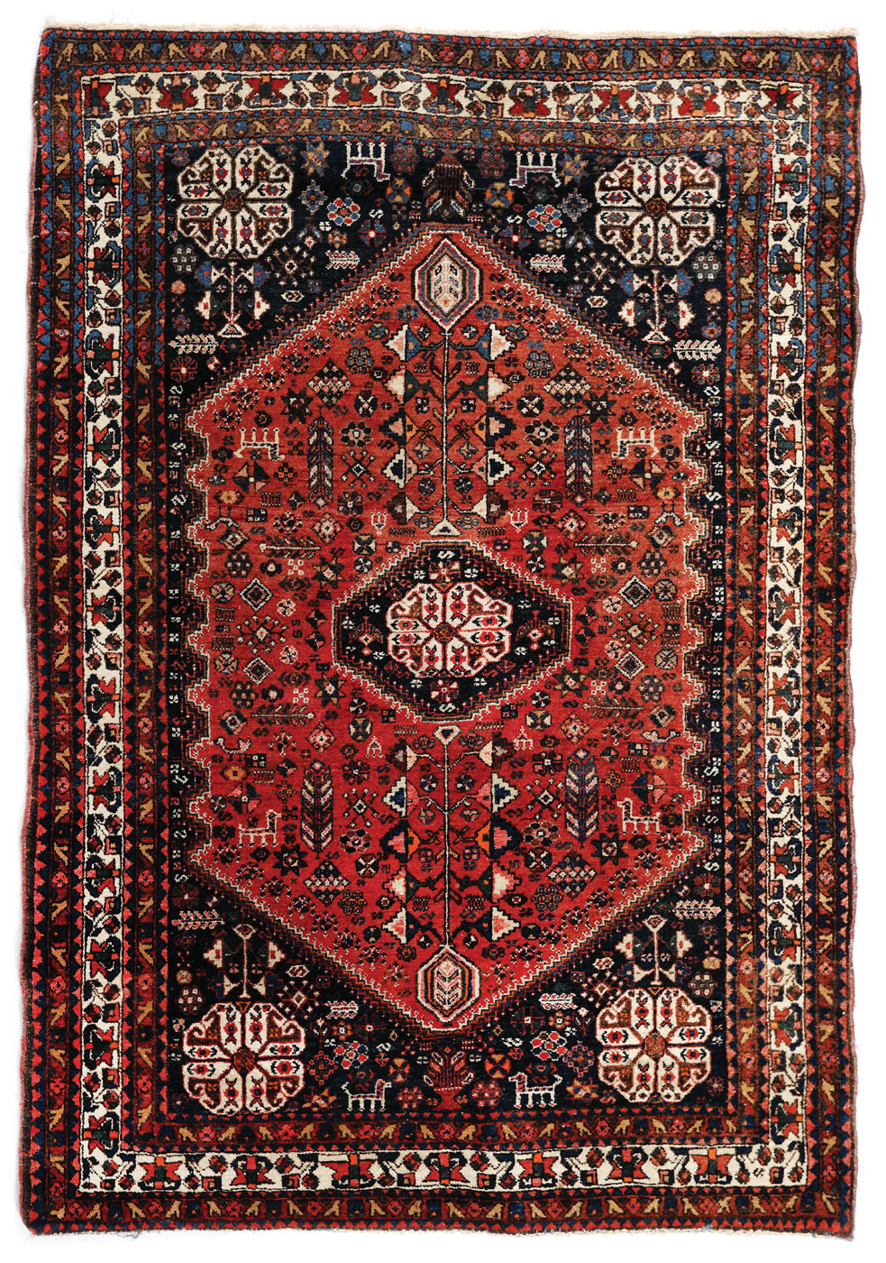 55. Covor Abadeh din lână, bogat decorat cu animale și plante, Iran, sec. XX