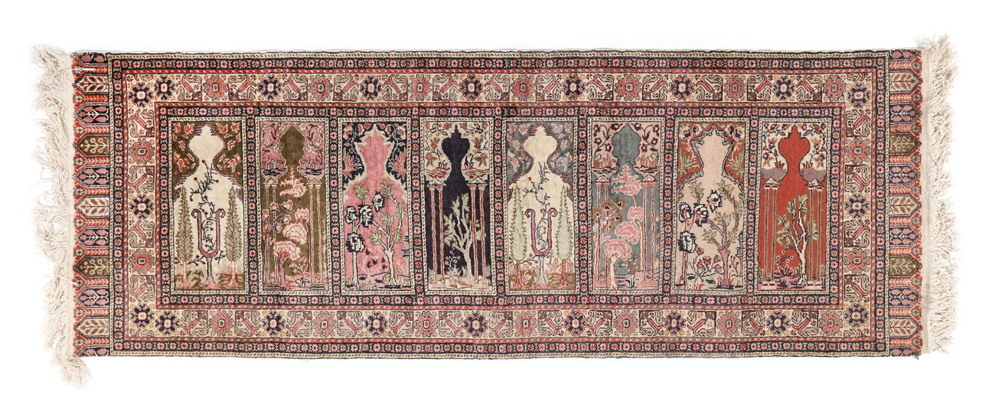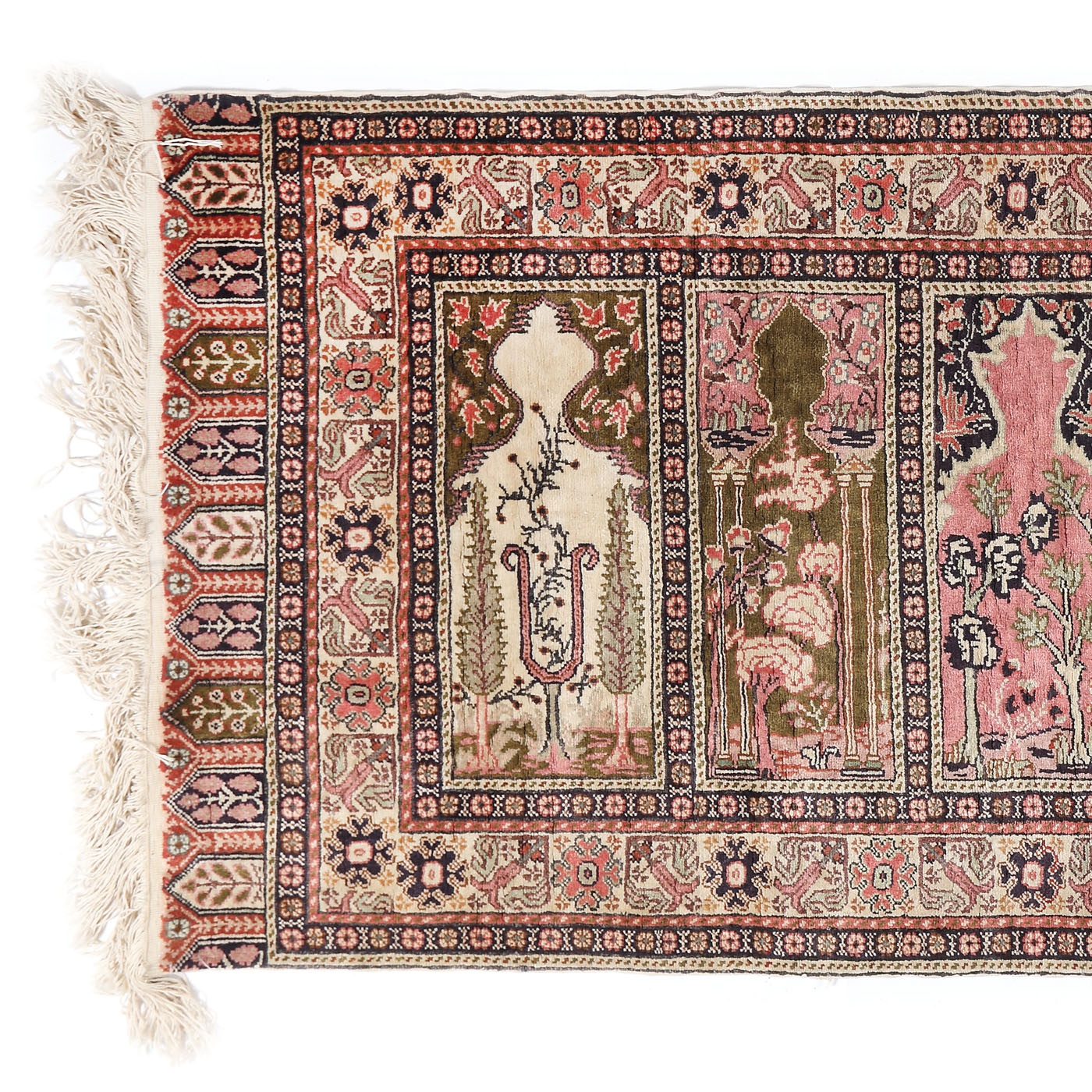 42. Covor Anatolian Saph din lână și mătase, de rugăciune, decorat cu copacul vieții în mihrab, Turcia, sec. XX