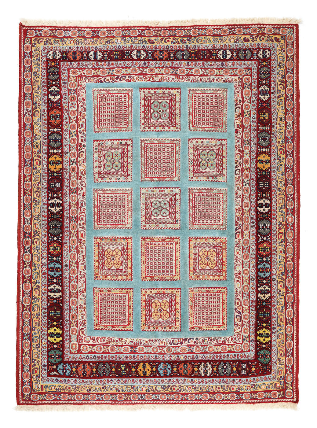 63. Covor Sirjan din lână, în relief, decorat cu arabescuri și motive geometrice stilizate, Iran, a doua jumătate a sec. XX