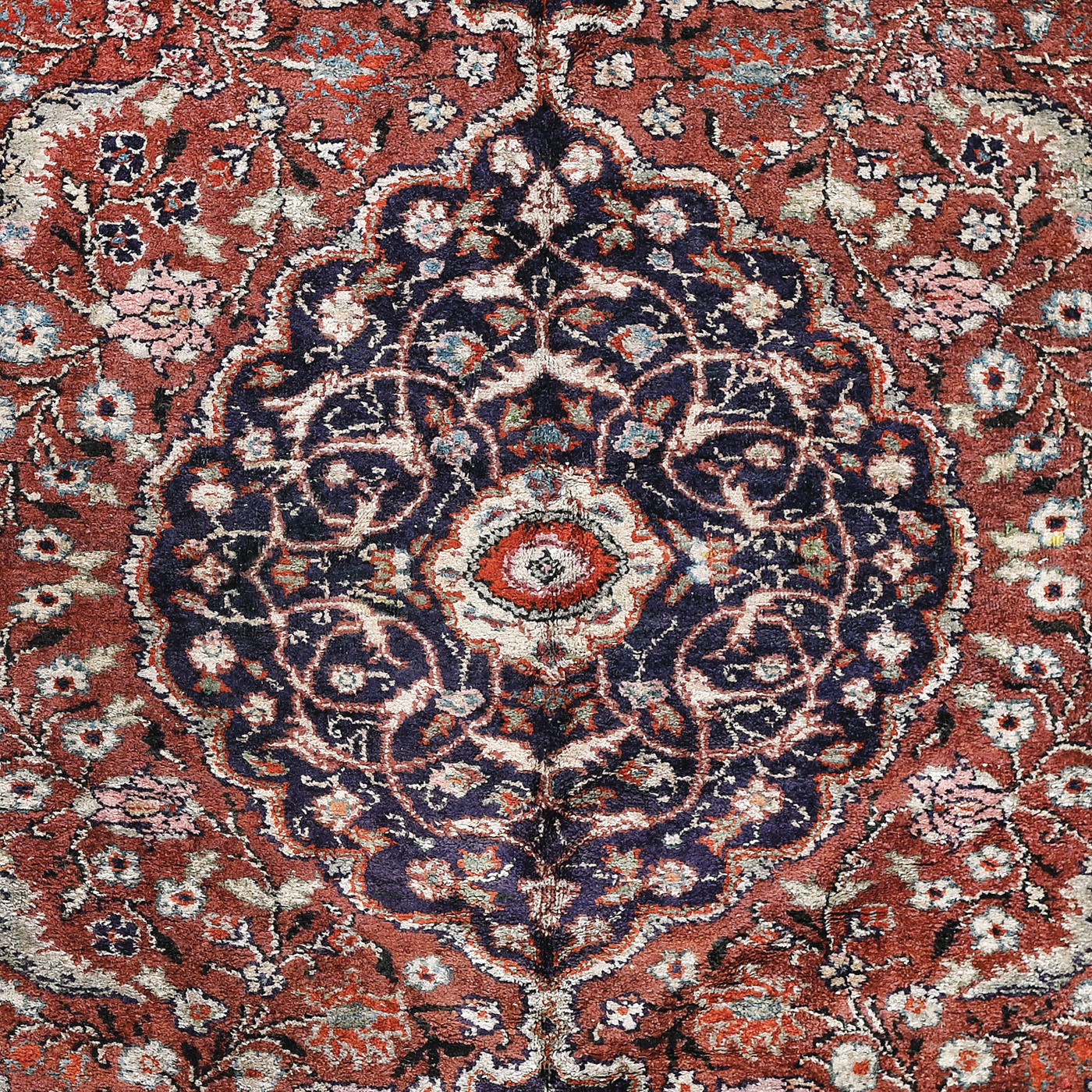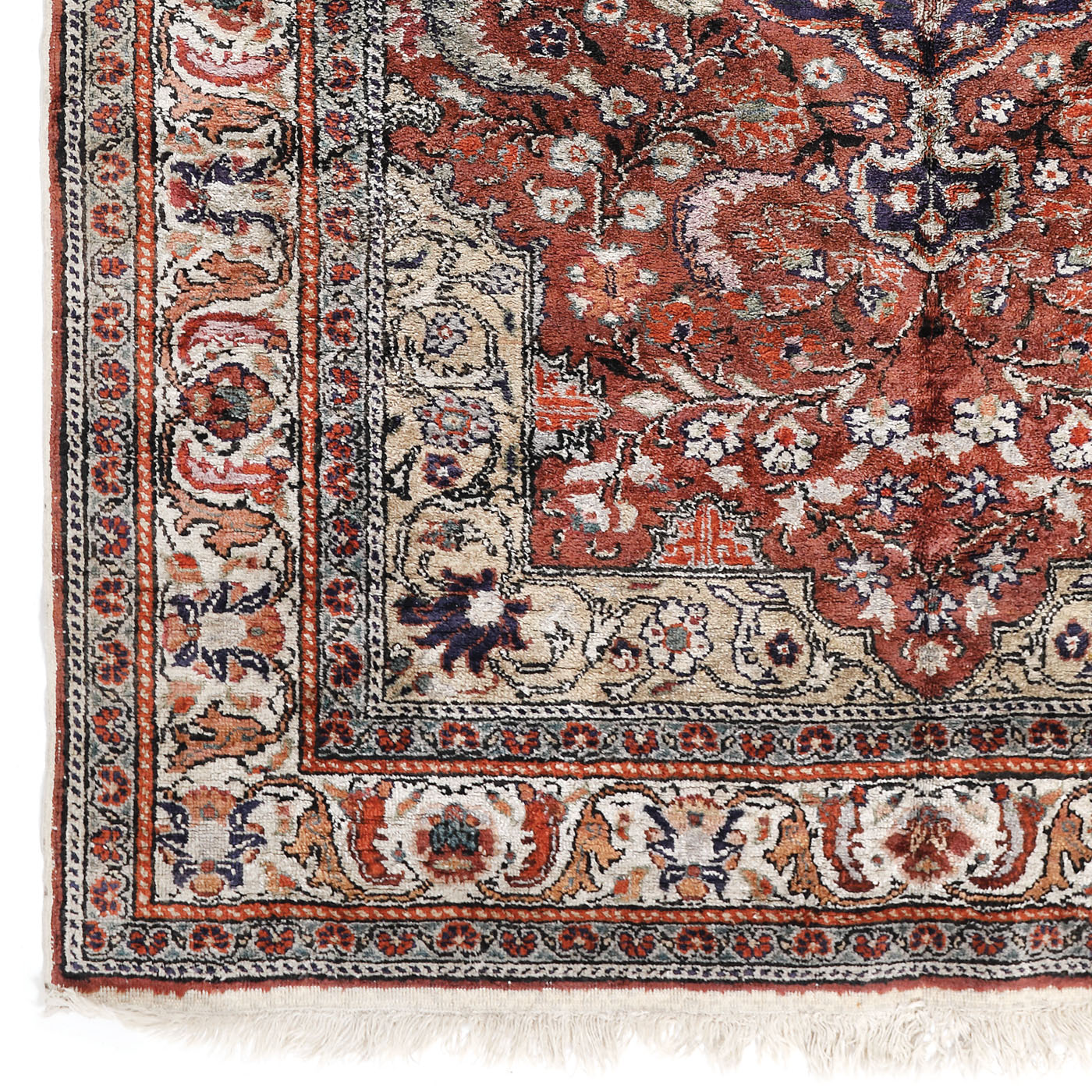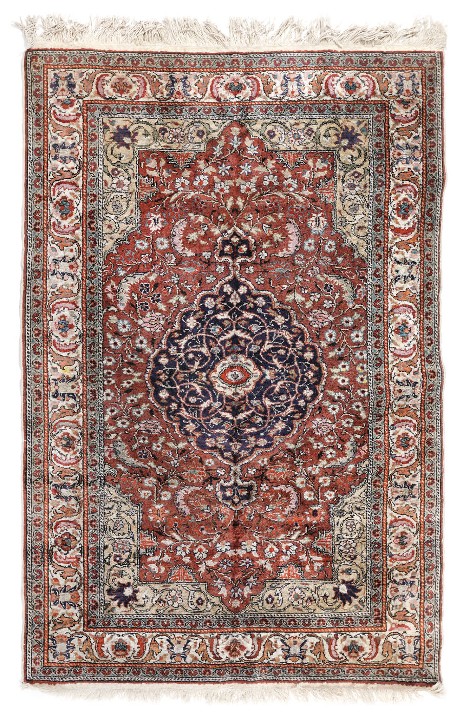 51. Covor Tabriz din mătase, bogat decorat cu medalion central și ghirlande florale, Iran, sec. XX