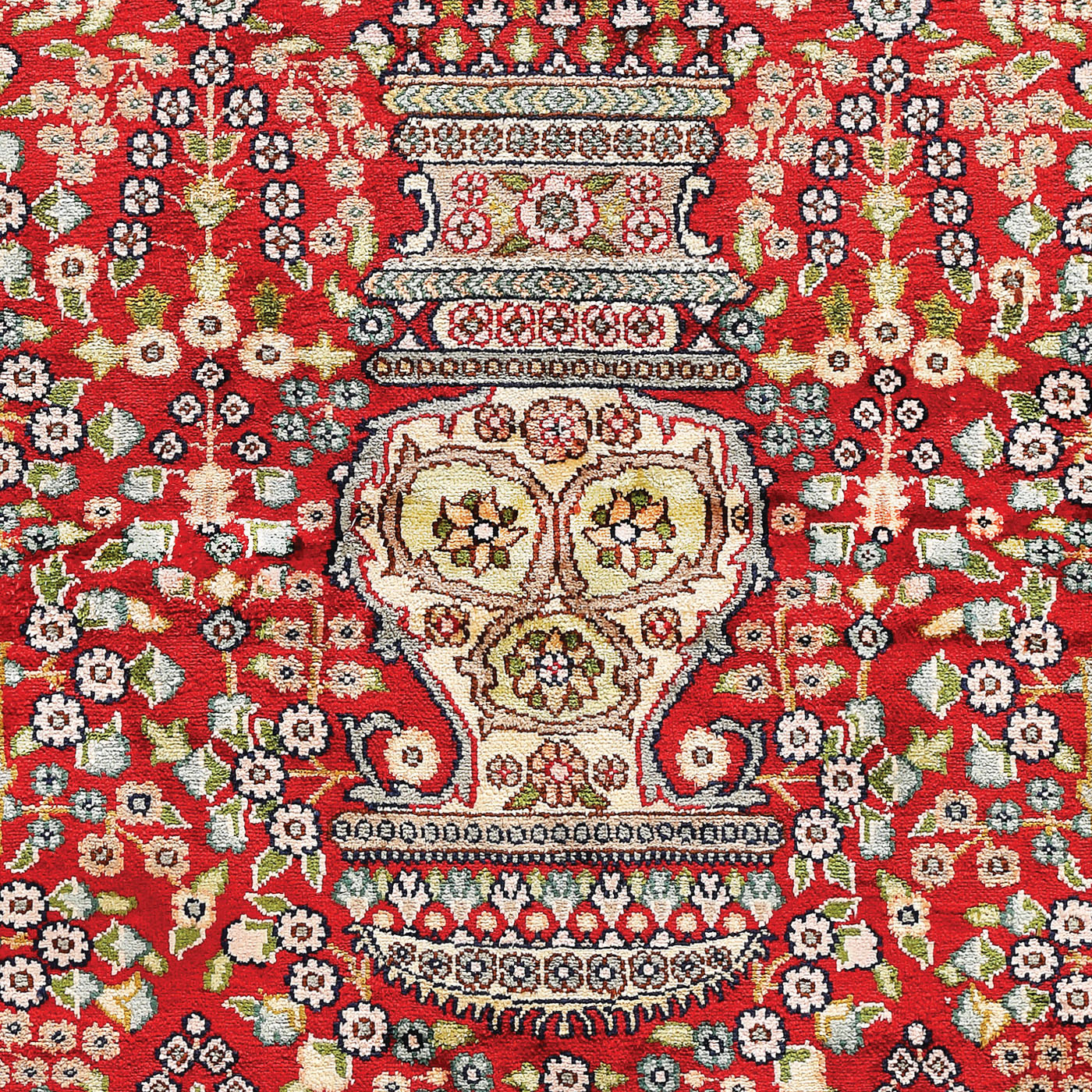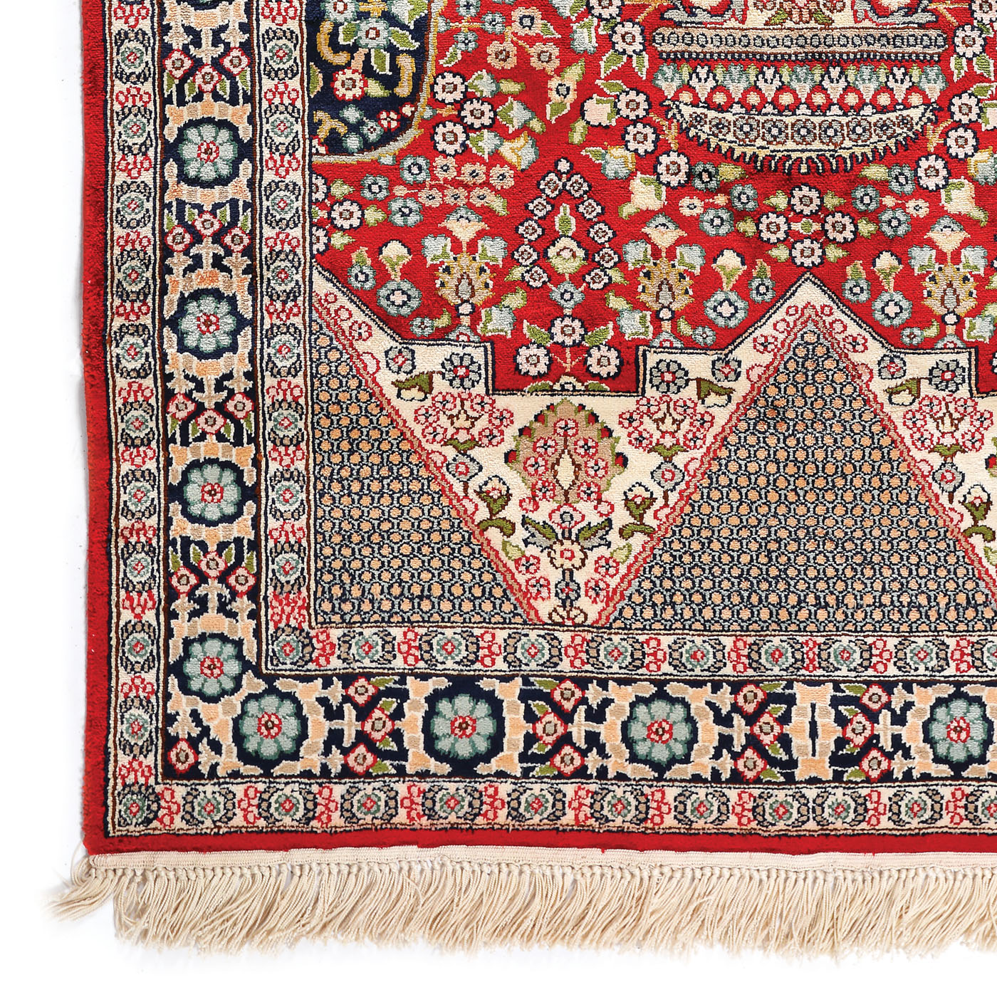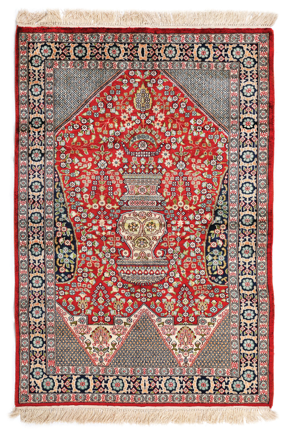 47. Covor Tabriz din mătase, decorat cu mihrab și motive elibelinde, Iran, a doua jumătate a sec. XX