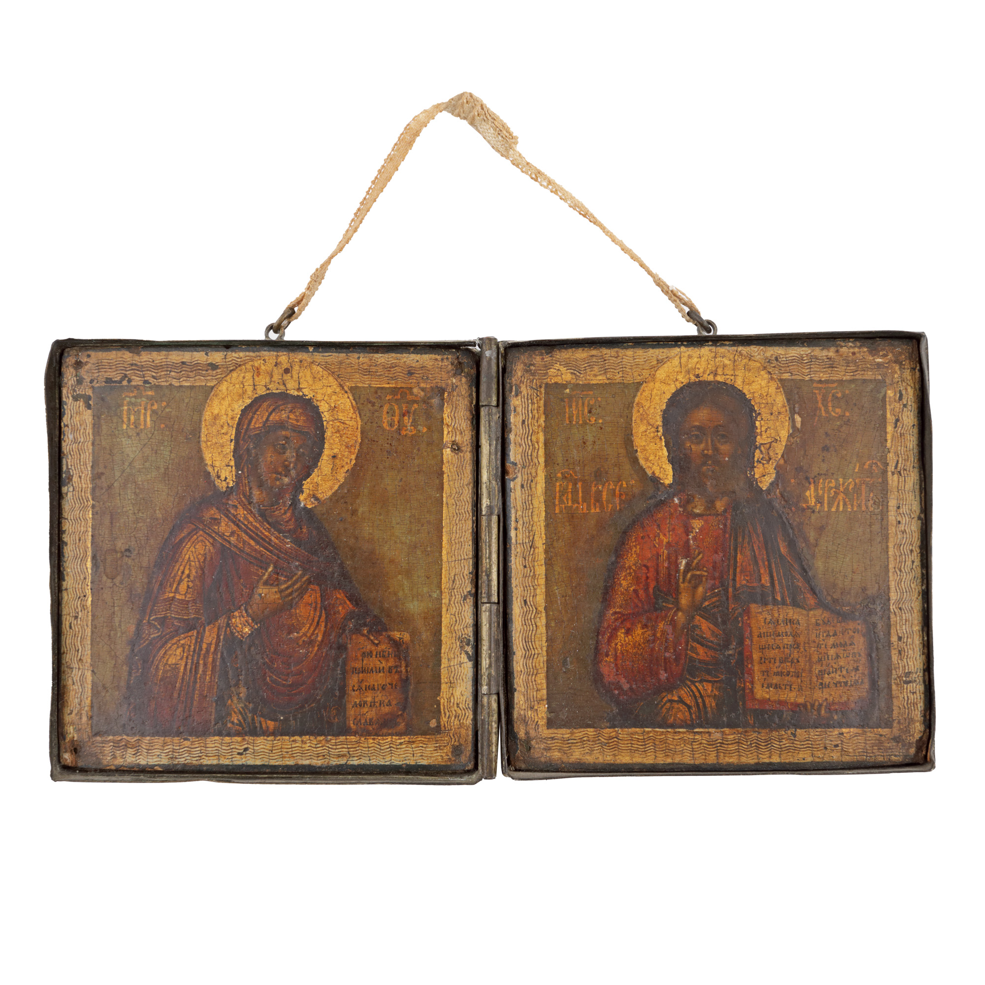 188. Diptic ”Maica Domnului cu Pruncul” și ”Iisus Hristos Pantocrator”, școală românească, prima jumătate a sec. XIX