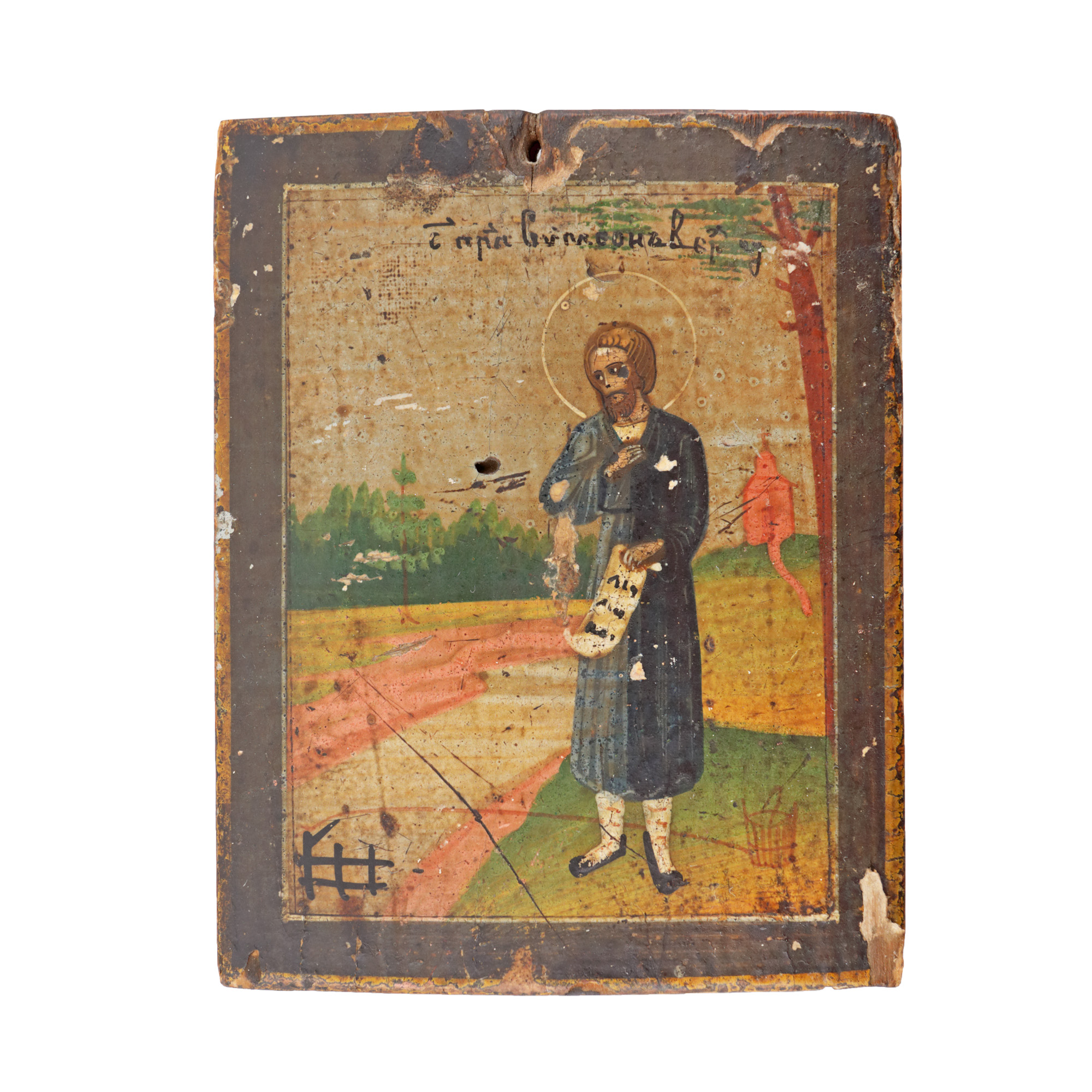 149. Icoană de călătorie, ”Sfântul Cuvios Simeon”, școală rusească, începutul sec. XIX