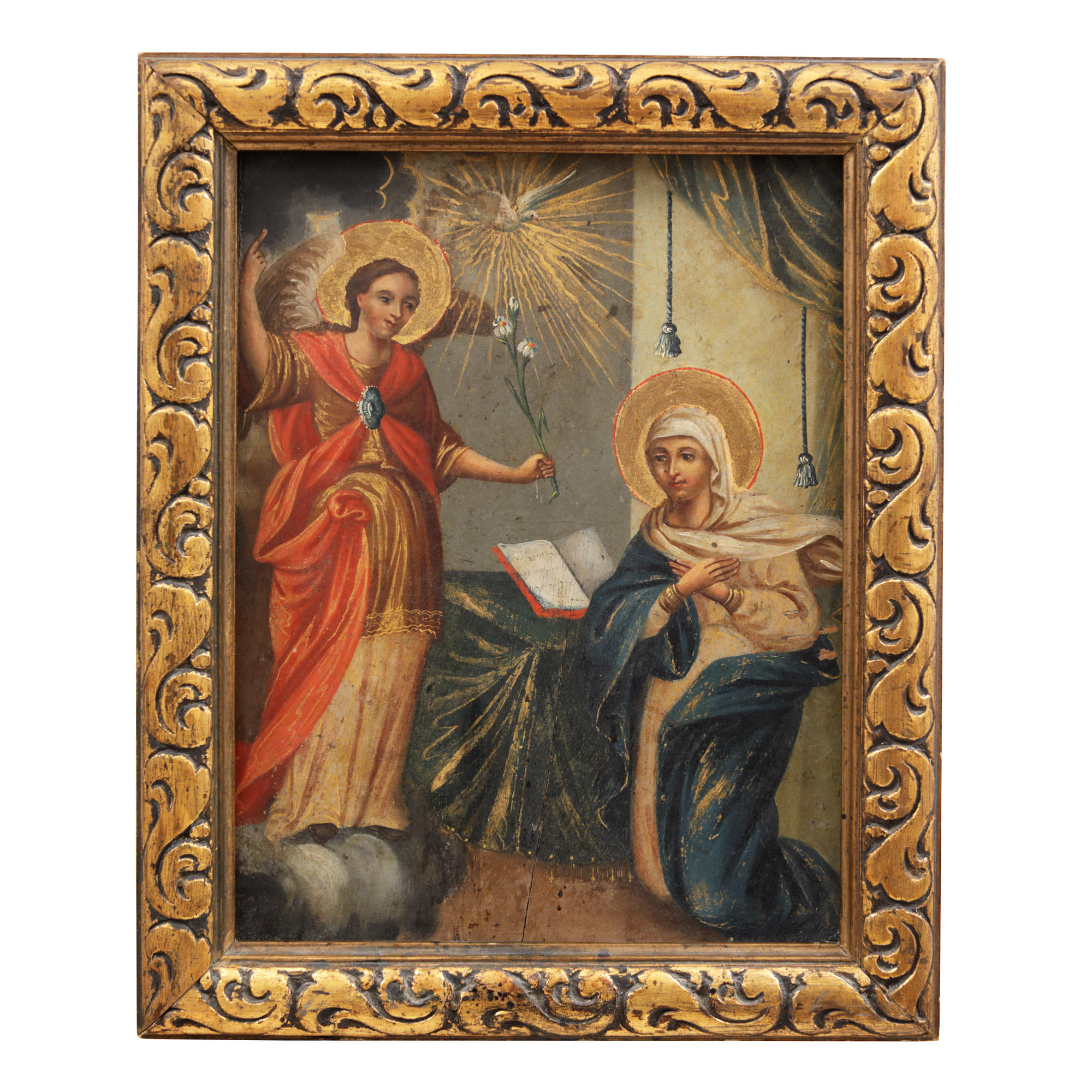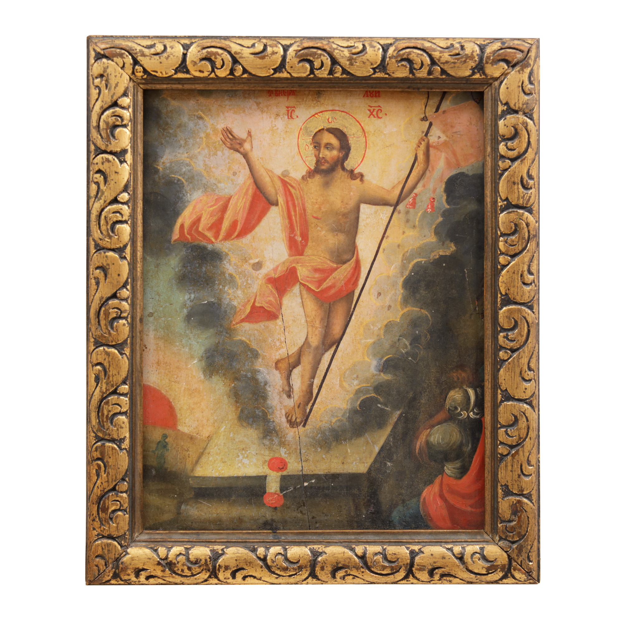 92. Icoană dublă prăznicar, ”Învierea Domnului” și ”Buna Vestire”, școală românească, prima jumătate a sec. XIX