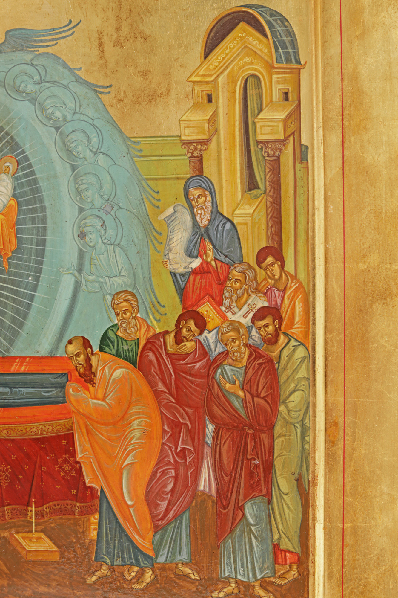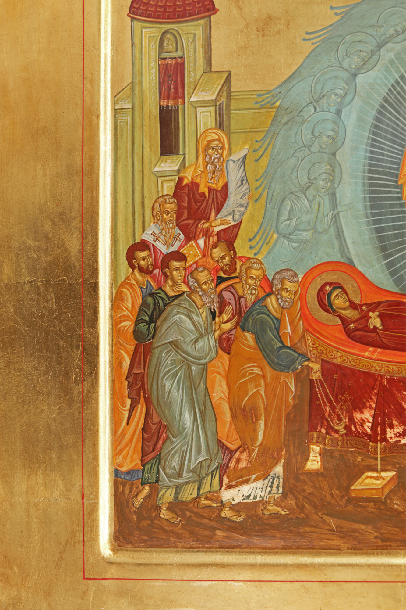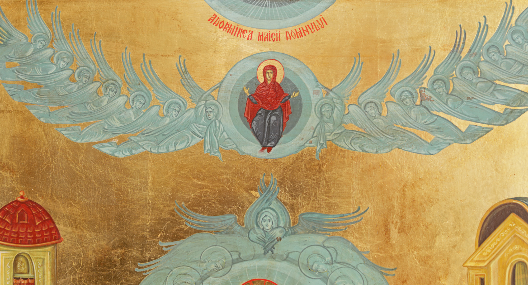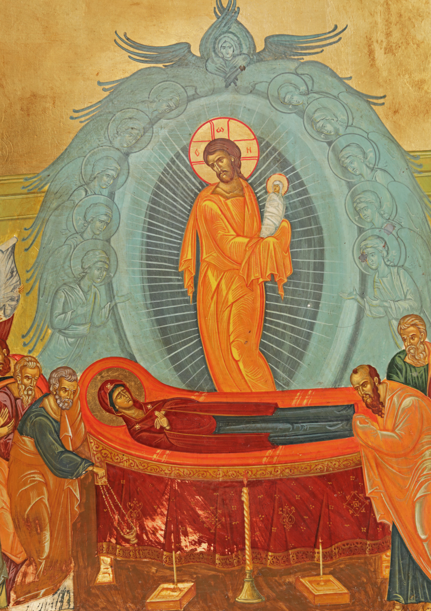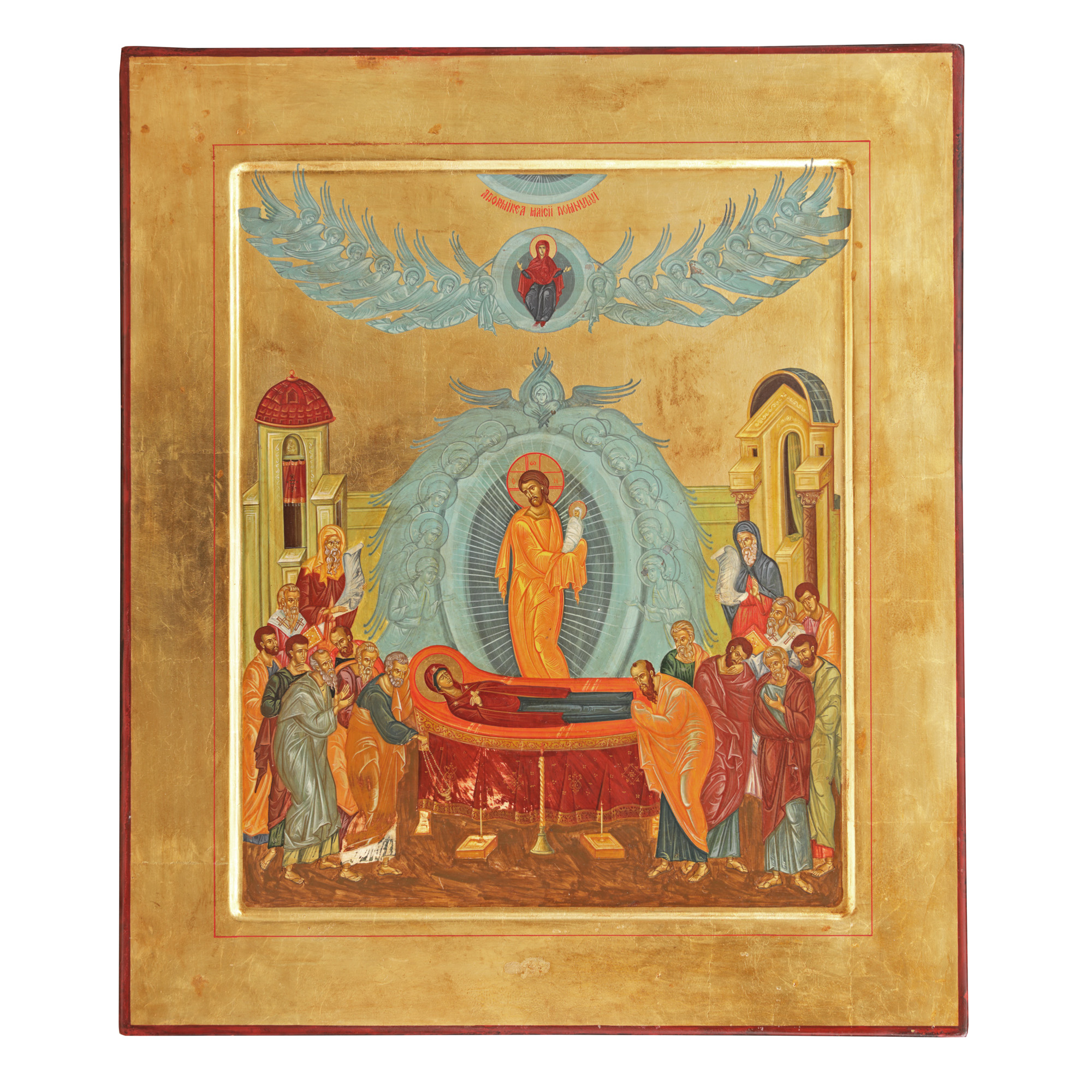 108. Icoană împărătească pe lemn, ”Adormirea Maicii Domnului”, școală românească