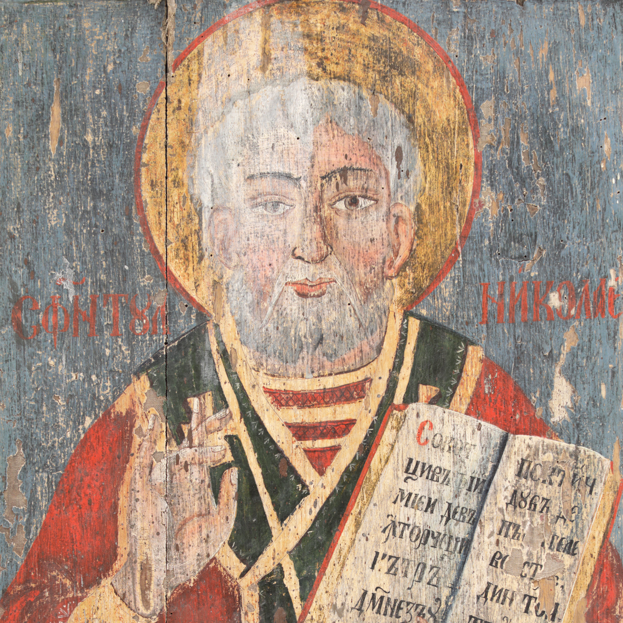81. Icoană împărătească pe lemn, ”Sfântul Nicolae”, școală transilvăneană, a doua jumătate a sec. XVIII