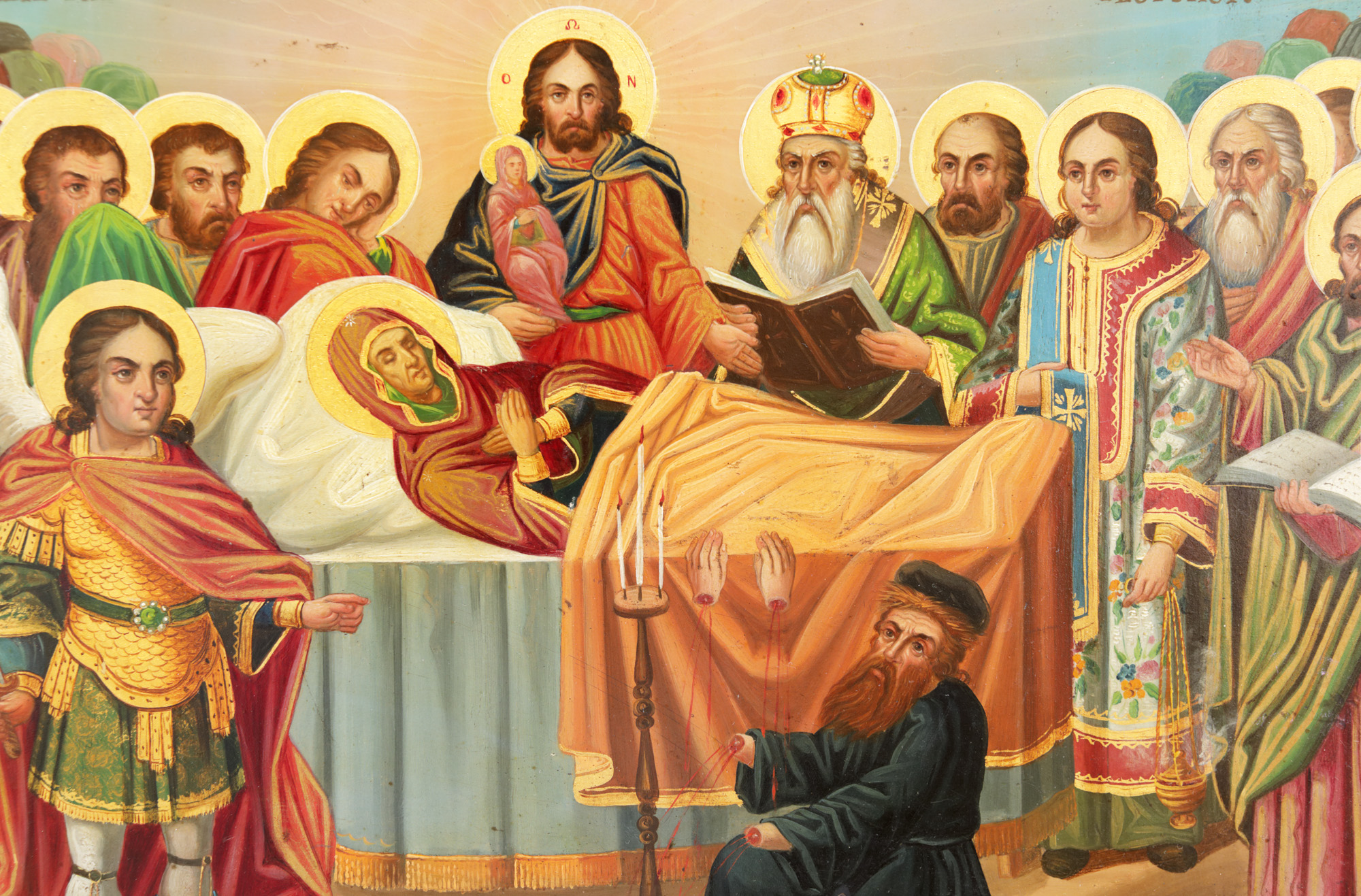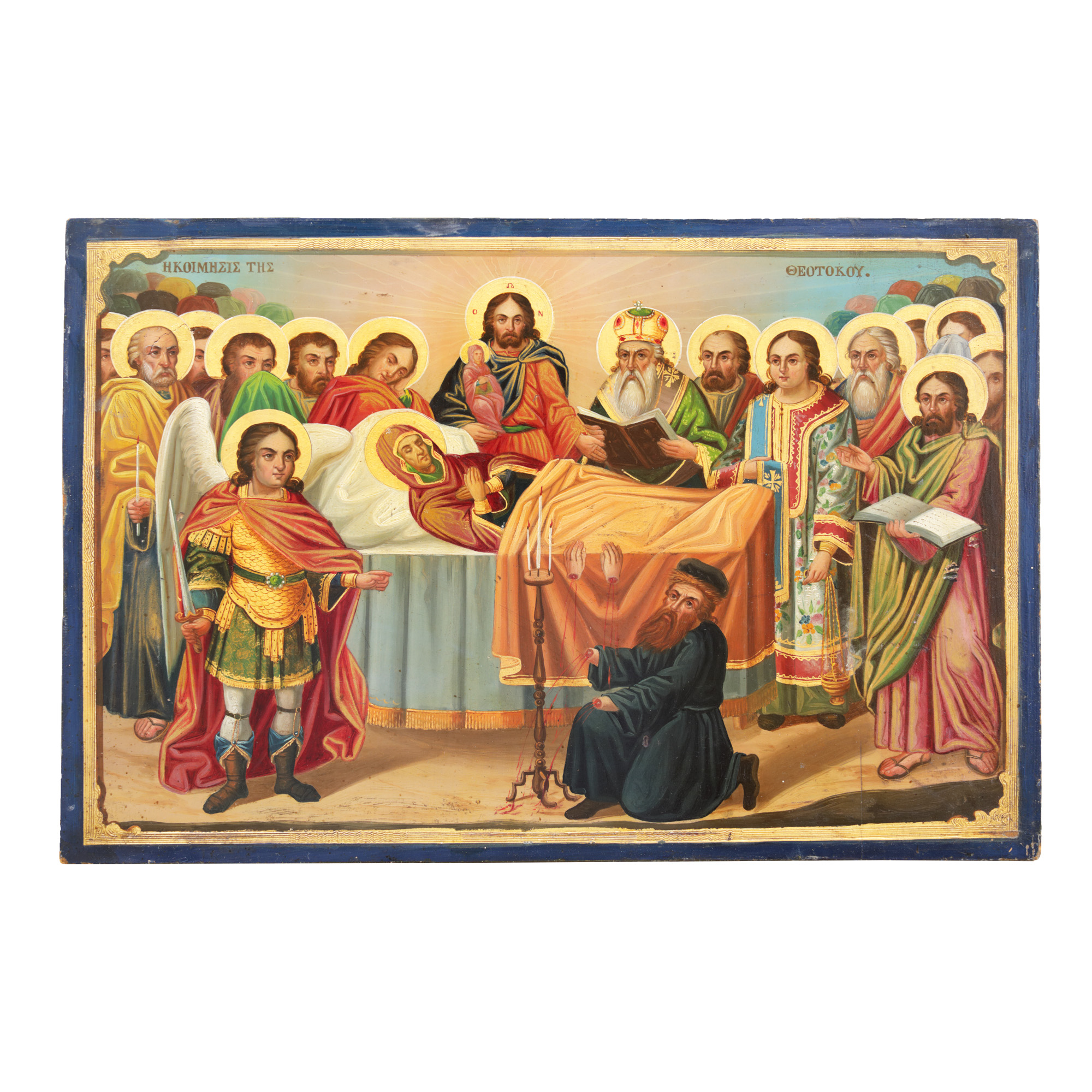 180. Icoană pe lemn, ”Adormirea Maicii Domnului”, școală românească, jumătatea sec. XIX