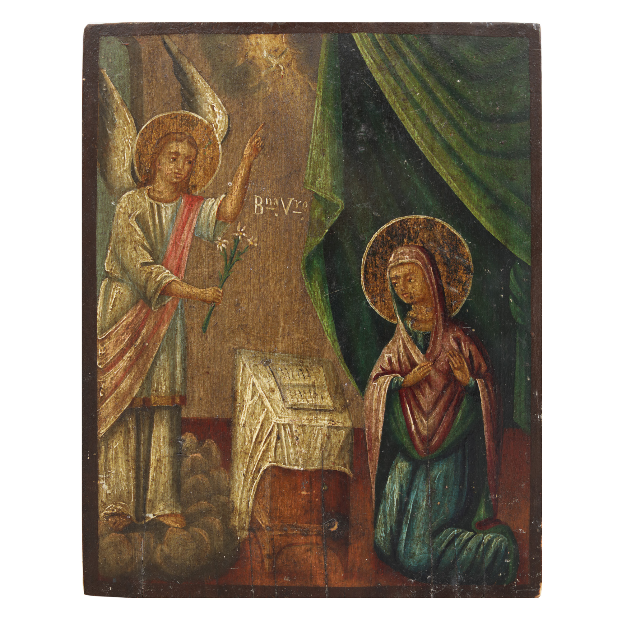 186. Icoană pe lemn, ”Buna Vestire”, școală românească, a doua jumătate a sec. XIX