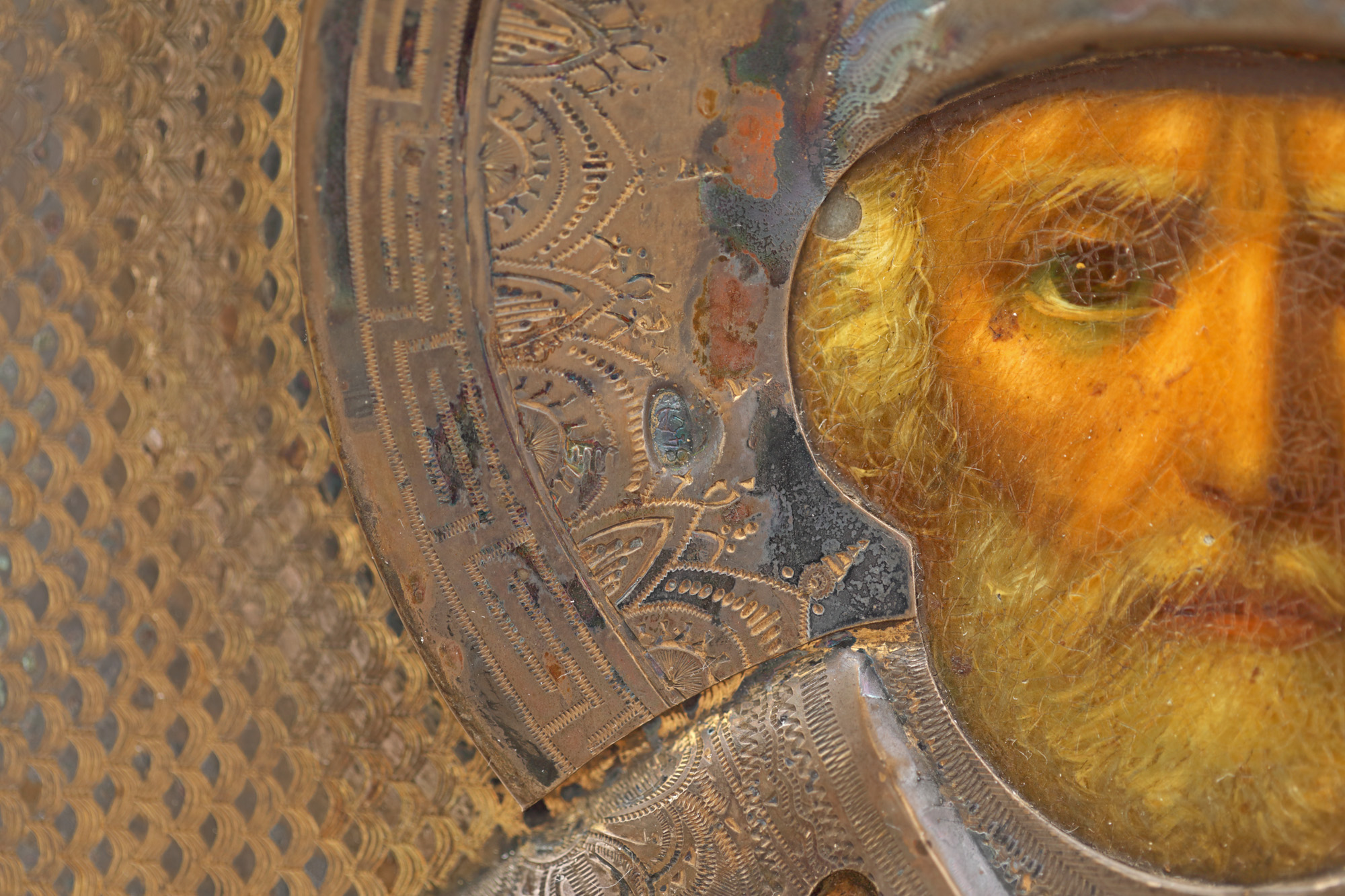 ulei pe lemn, argint aurit 875