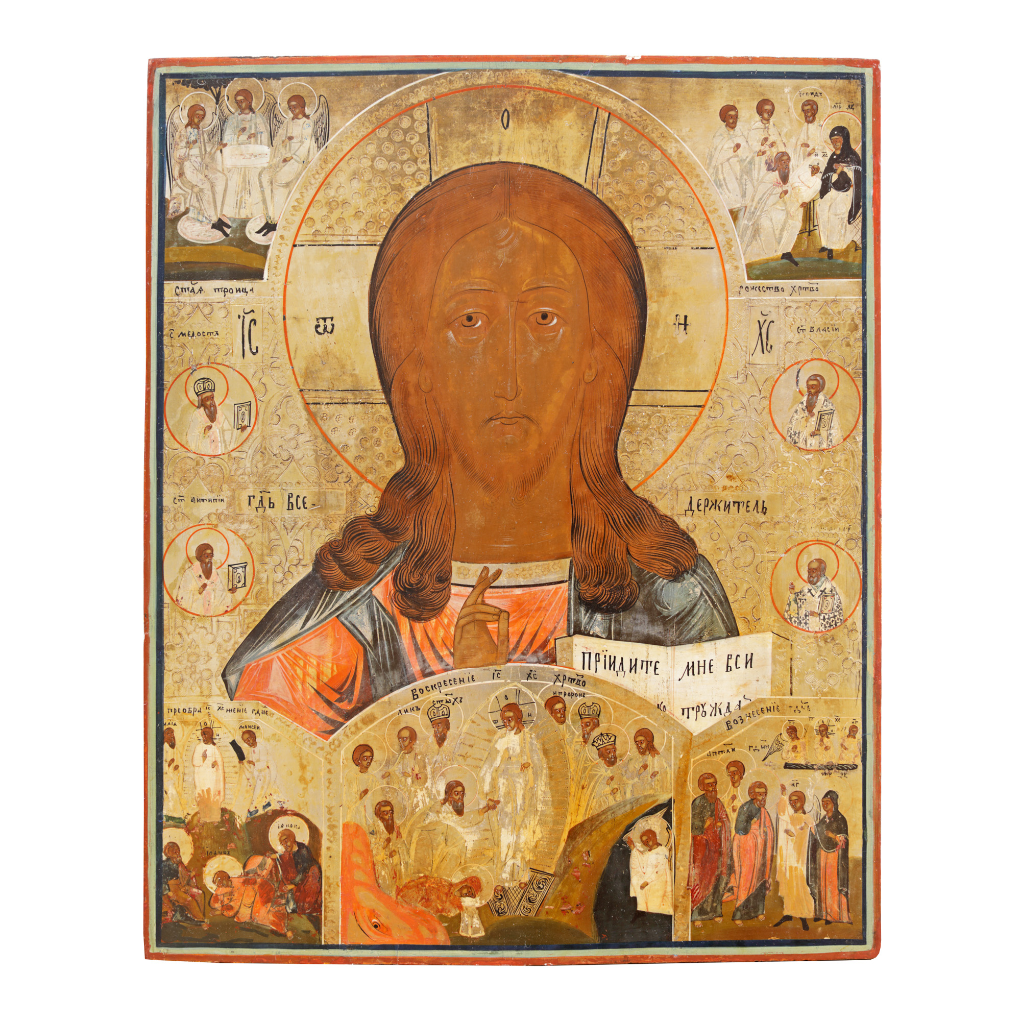 145. Icoană pe lemn, ”Iisus Hristos și scene din viața sa”, școală rusească, începutul sec. XIX