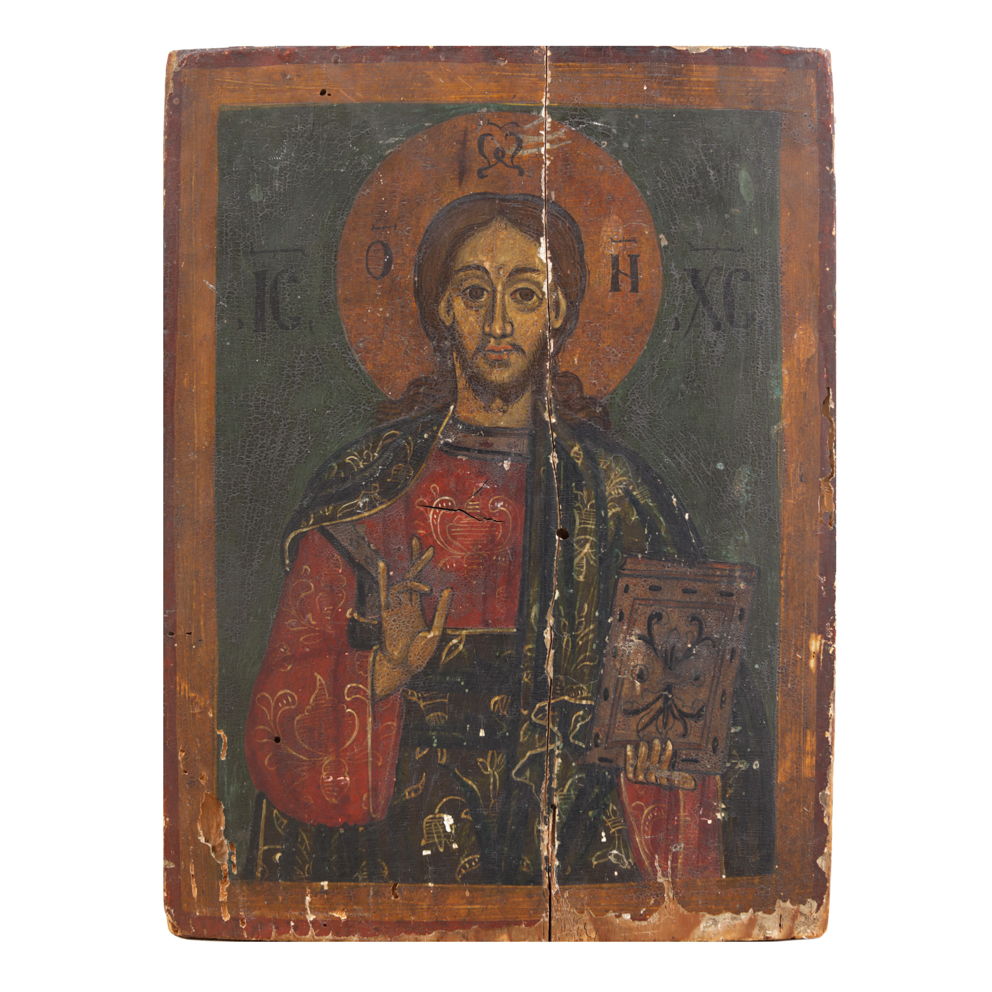 82. Icoană pe lemn, ”Iisus Pantocrator”, școală post-brâncovenească, către sfârșitul sec. XVIII