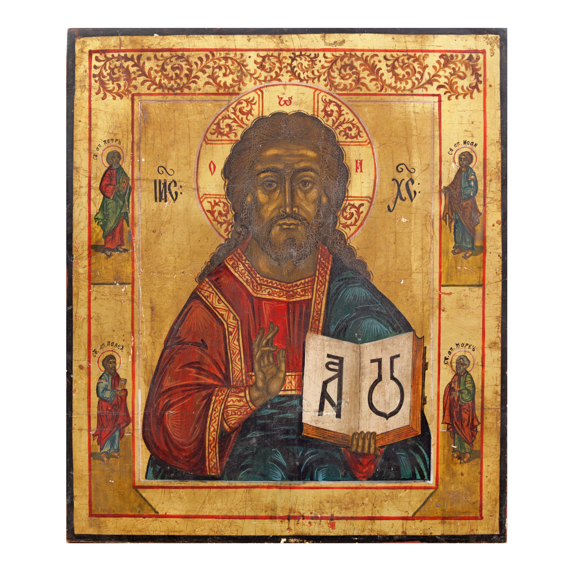 90. Icoană pe lemn, ”Iisus Pantocrator”, școală românească, jumătatea sec. XIX
