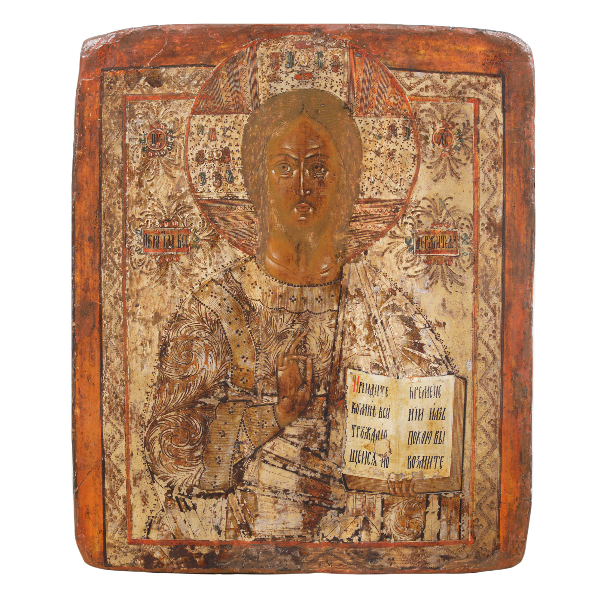 144. Icoană pe lemn, "Iisus Pantocrator", școală rusească, a doua jumătate a sec. XVIII, de colecție
