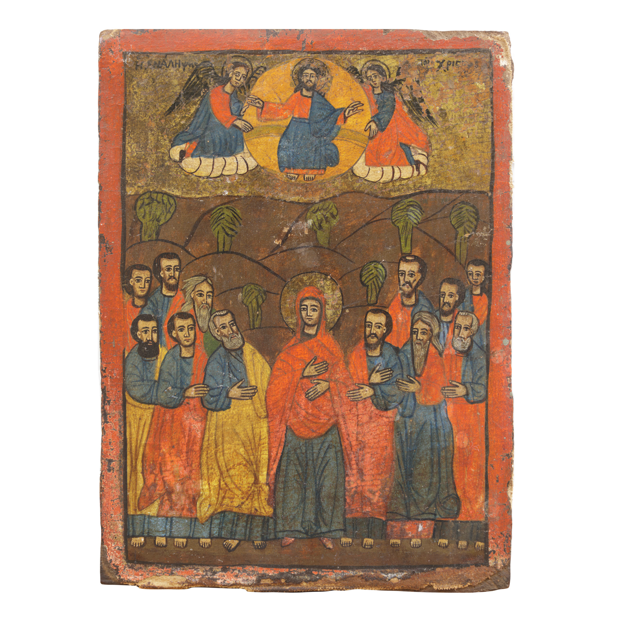 190. Icoană pe lemn, ”Înălțarea Domnului”, școală transilvăneană, a doua jumătate a sec. XVIII