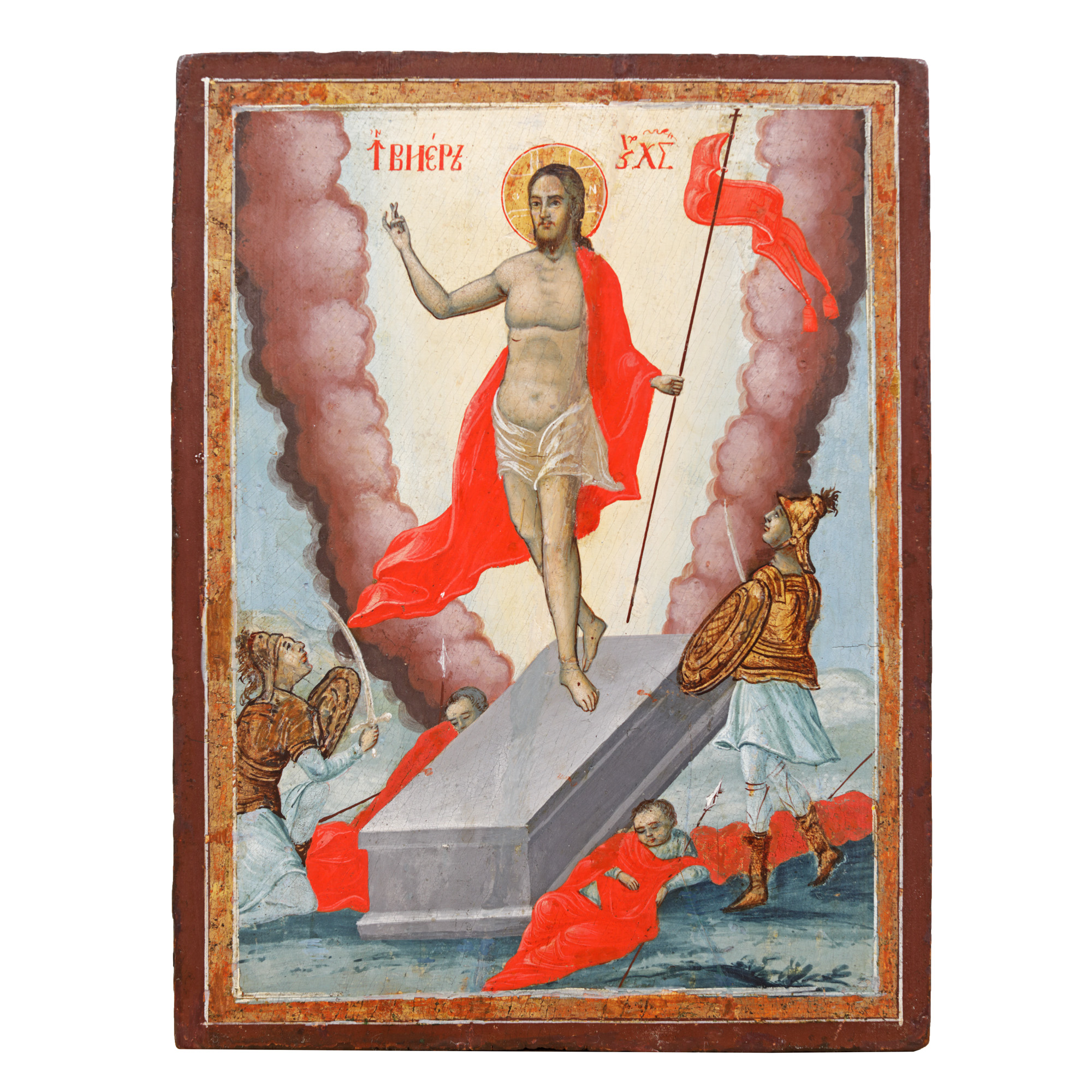 93. Icoană pe lemn, ”Învierea Domnului”, școală românească, prima jumătate a sec. XIX
