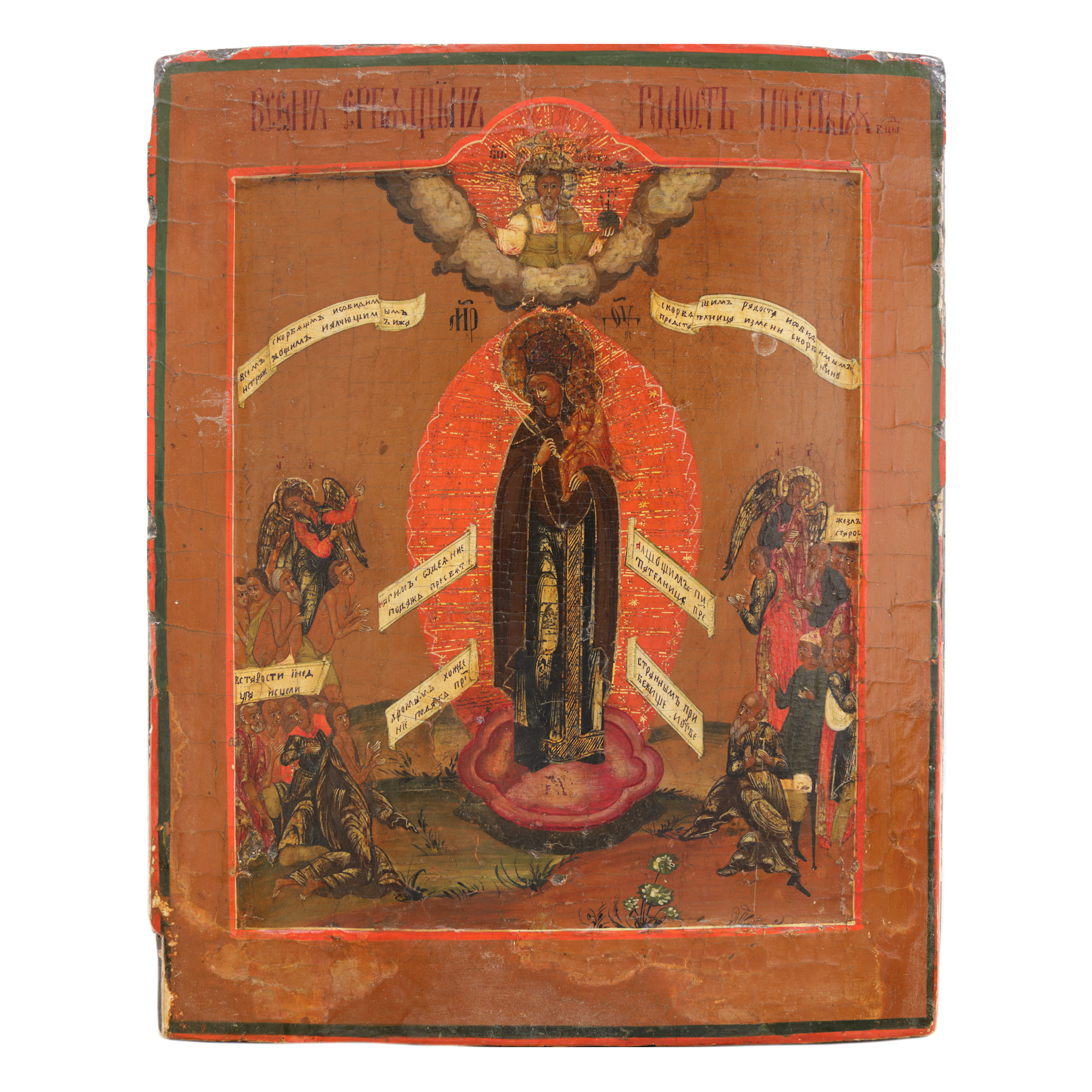 176. Icoană pe lemn, "Maica Domnului cu Pruncul - Pavăză celor îndurerați și bolnavi”, școală rusească, jumătatea sec. XIX
