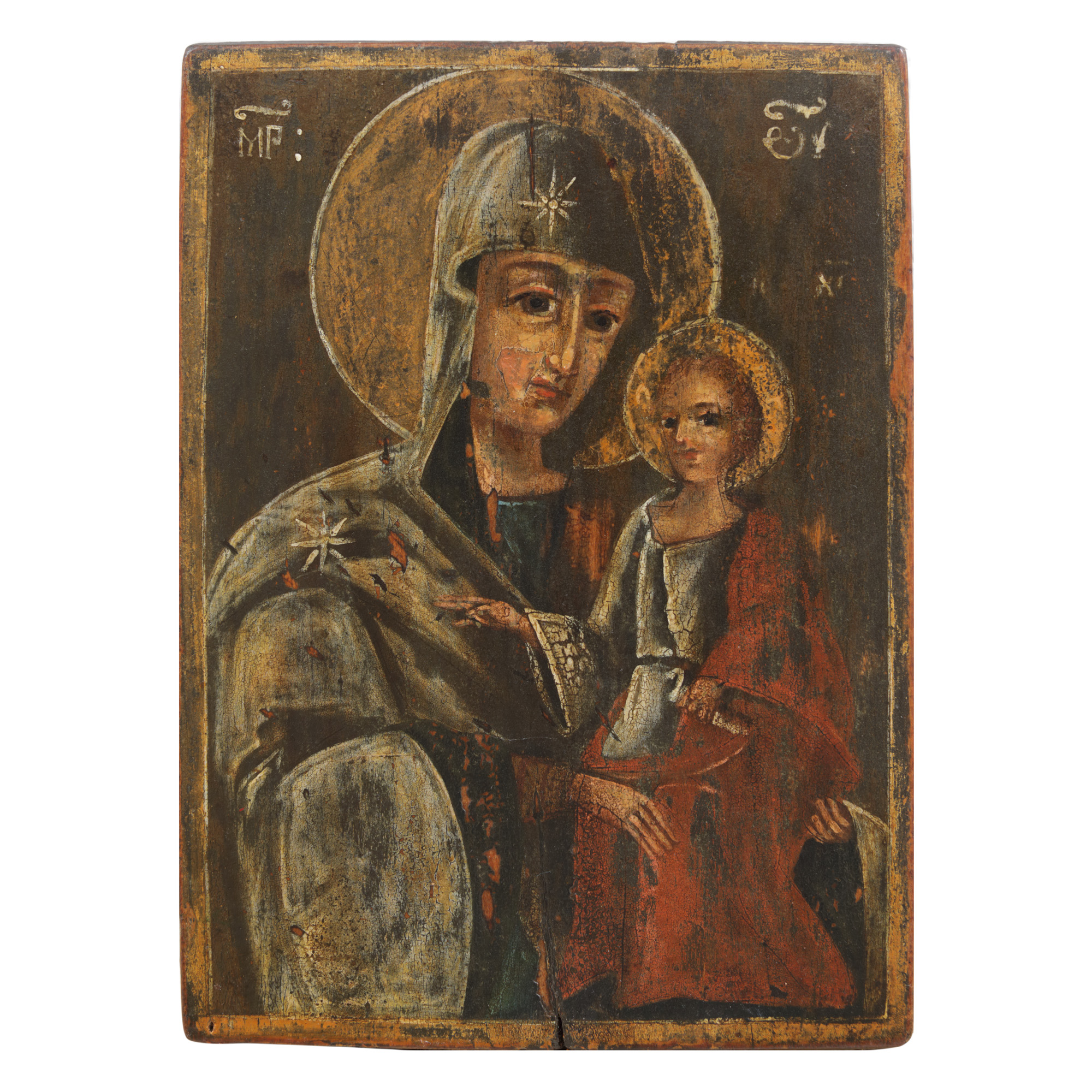 202. Icoană pe lemn, ”Maica Domnului cu Pruncul”, școală moldovenească, prima jumătate a sec. XIX