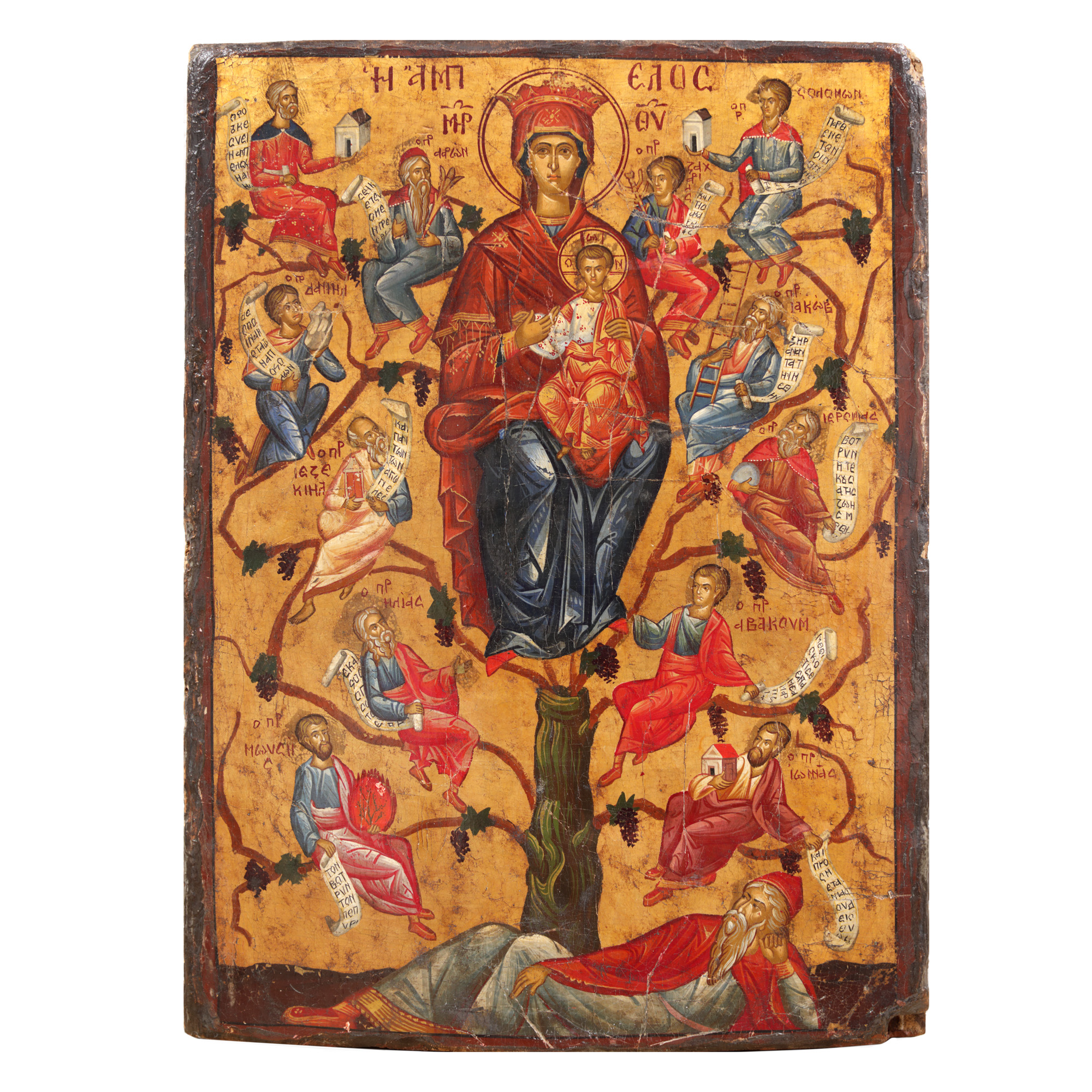 138. Icoană pe lemn, ”Mâna Dreaptă a Iubirii (Copacul Vieții Maicii Domnului)”, școală grecească
