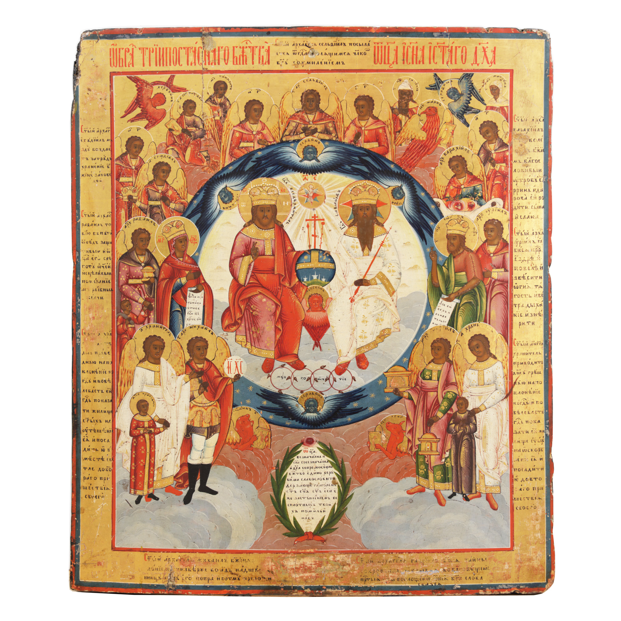 163. Icoană pe lemn, ”Sfânta Treime nou-testamentară”, școală rusească, jumătatea sec. XIX