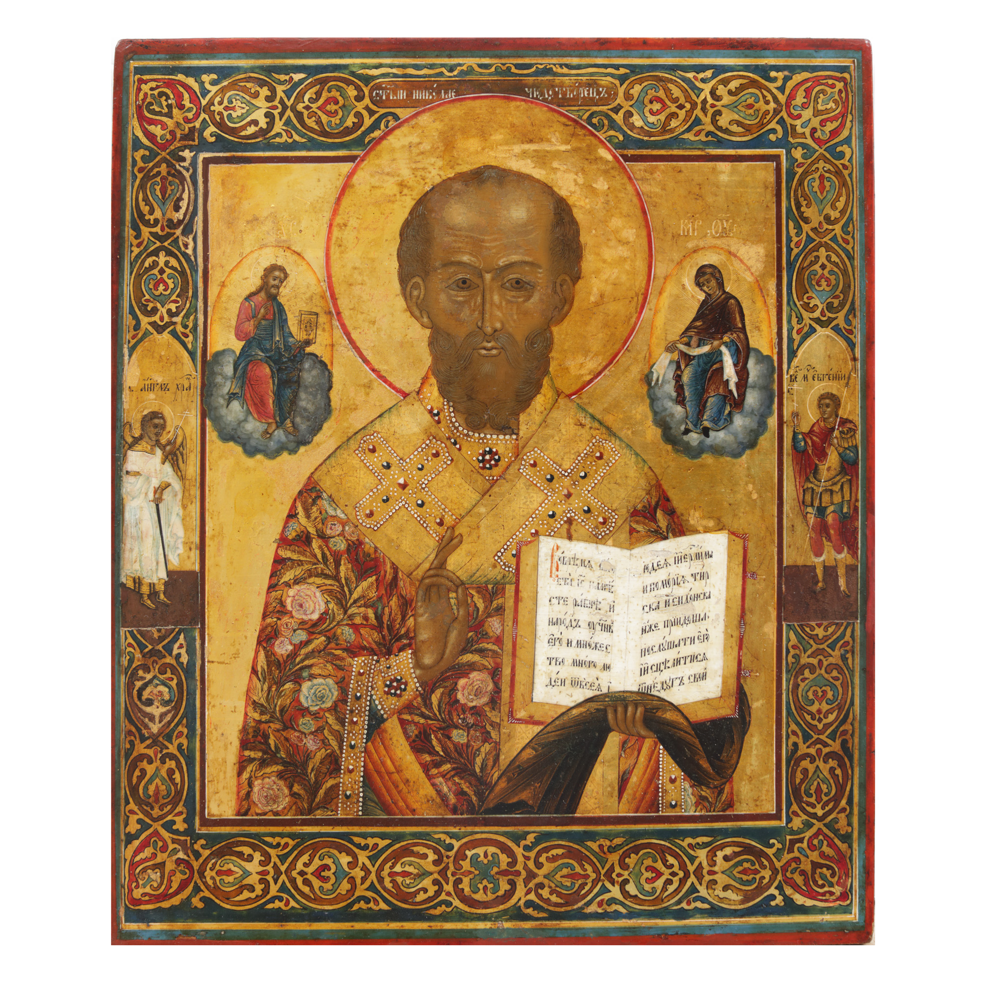 164. Icoană pe lemn, ”Sfântul Ierarh Nicolae”, școală rusească, jumătatea sec. XIX, piesă de colecție