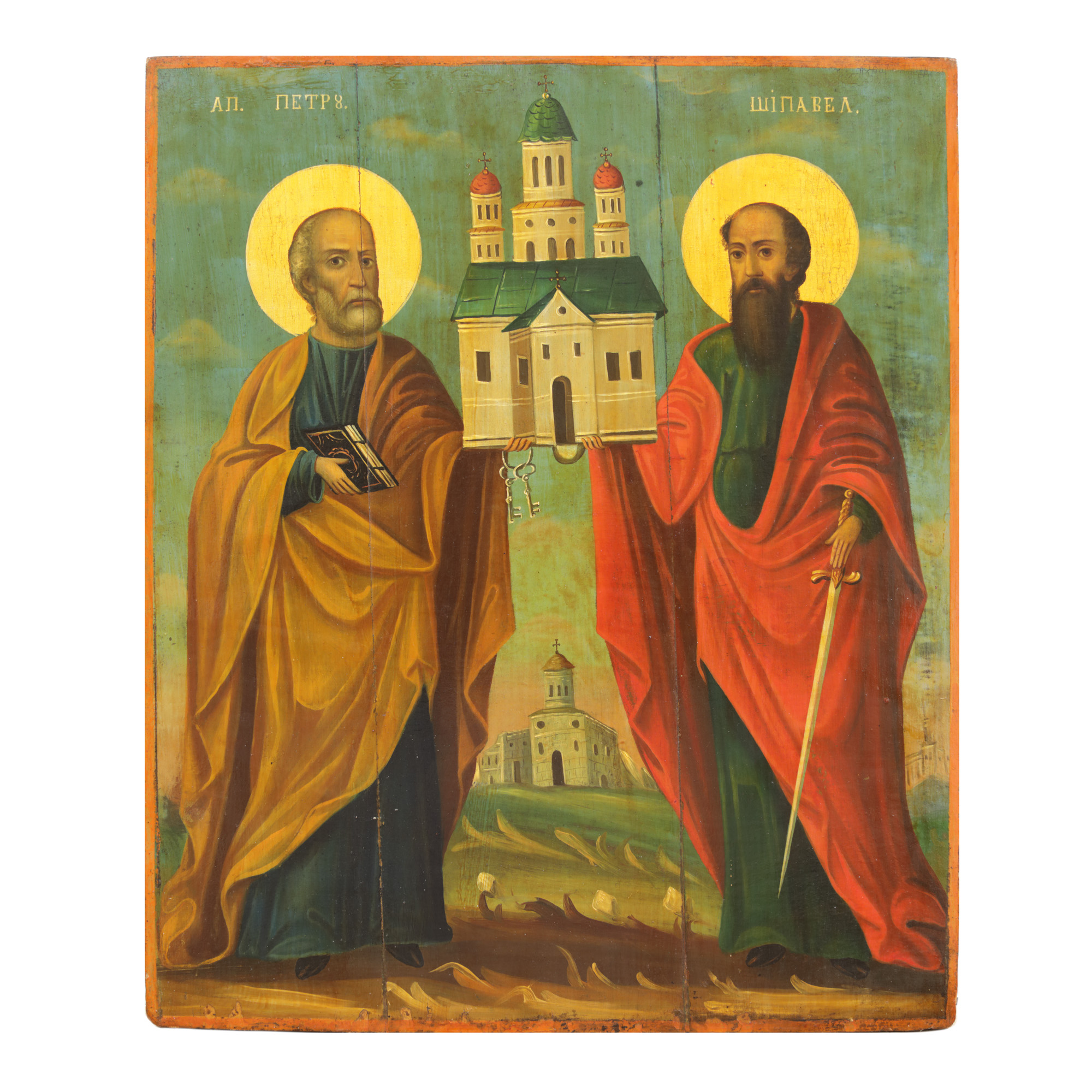 183. Icoană pe lemn, ”Sfinții Apostoli Petru și Pavel”, școală românească, prima jumătate a sec. XIX