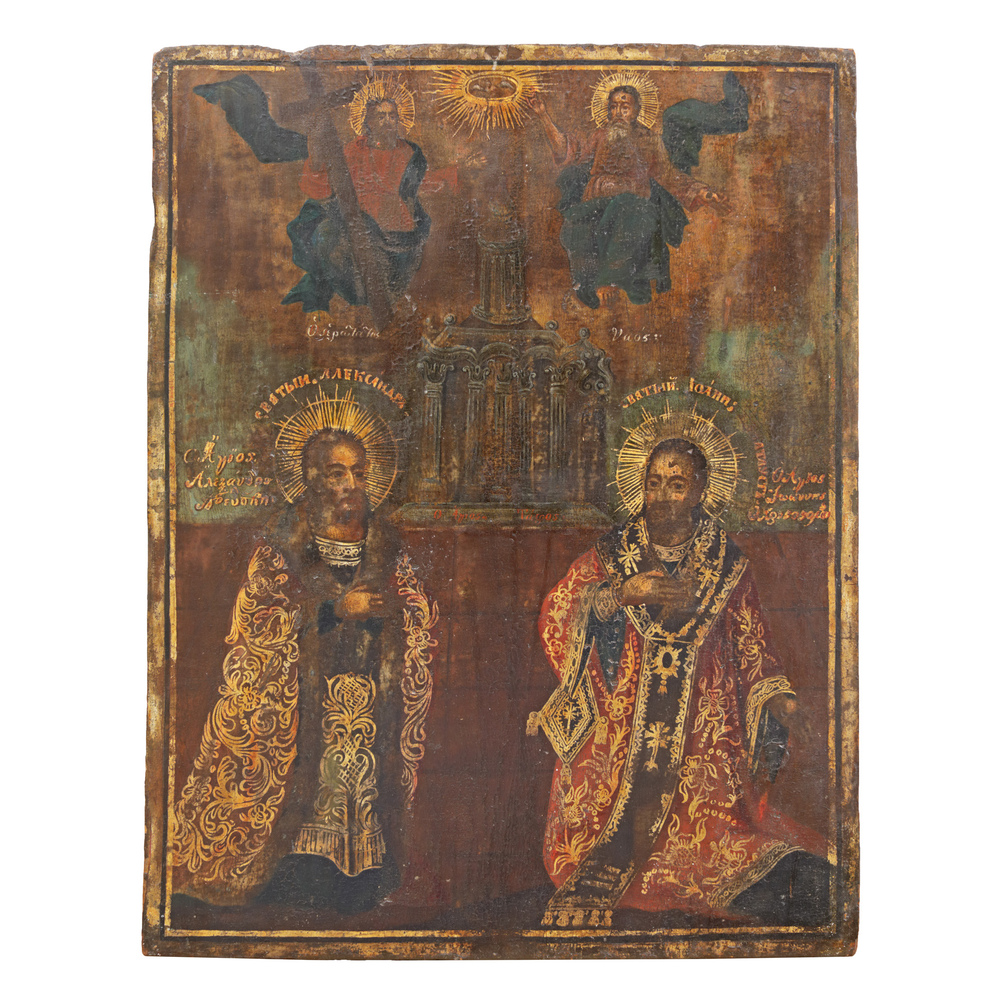 198. Icoană pe lemn, ”Sfinții Ierarhi Alexandru și Ioan”, școală moldovenească, sec. XIX, piesă rară
