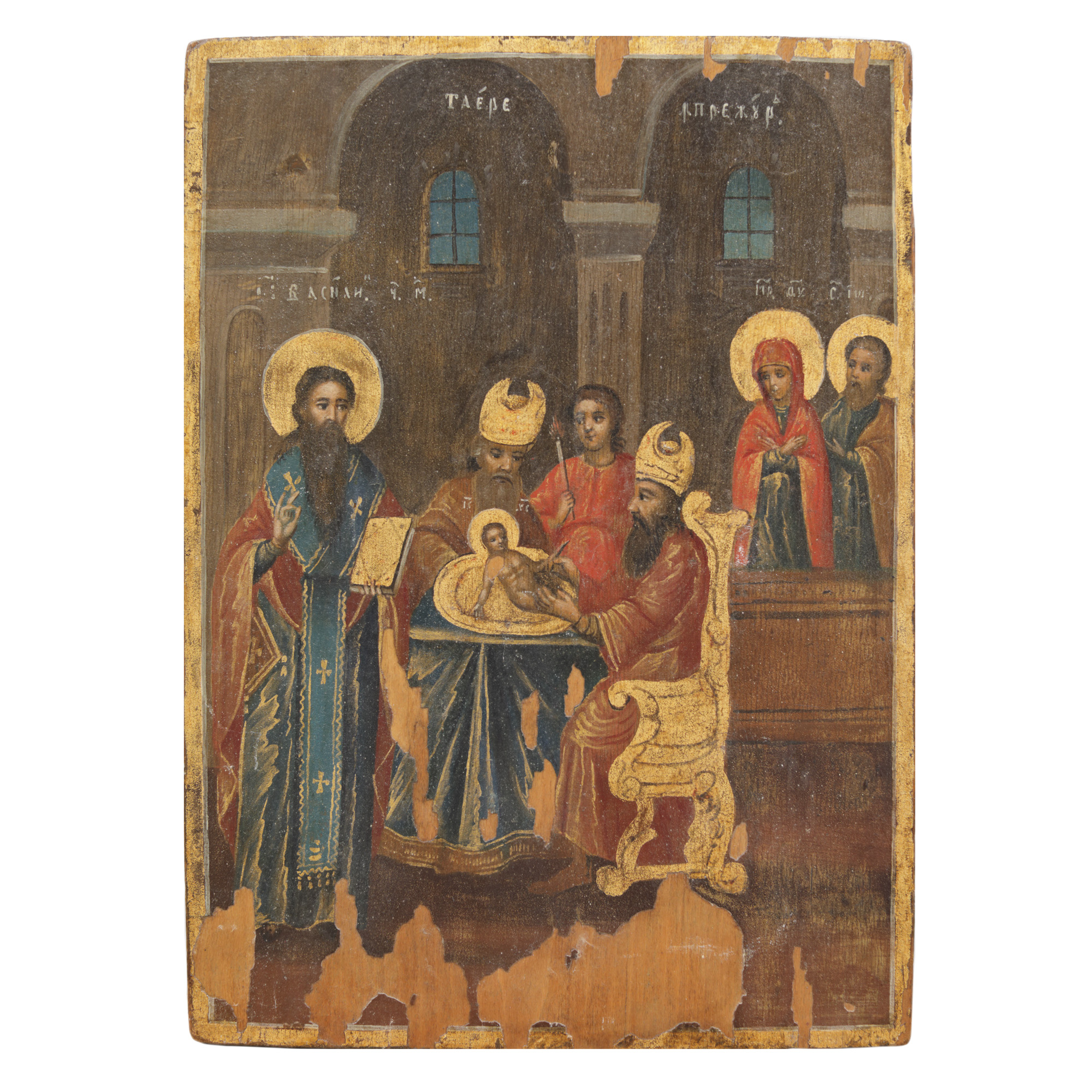 193. Icoană pe lemn, ”Tăierea împrejur a Domnului”, școală moldovenească, prima jumătate a sec. XIX, piesă rară, de colecție