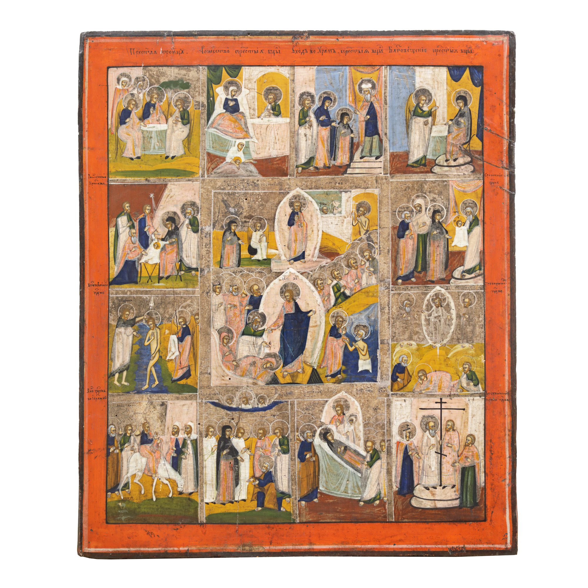 146. Icoană prăznicar pe lemn, "Învierea Domnului și 12 scene”, școală rusească, sfârșitul sec. XVIII - începutul sec. XIX