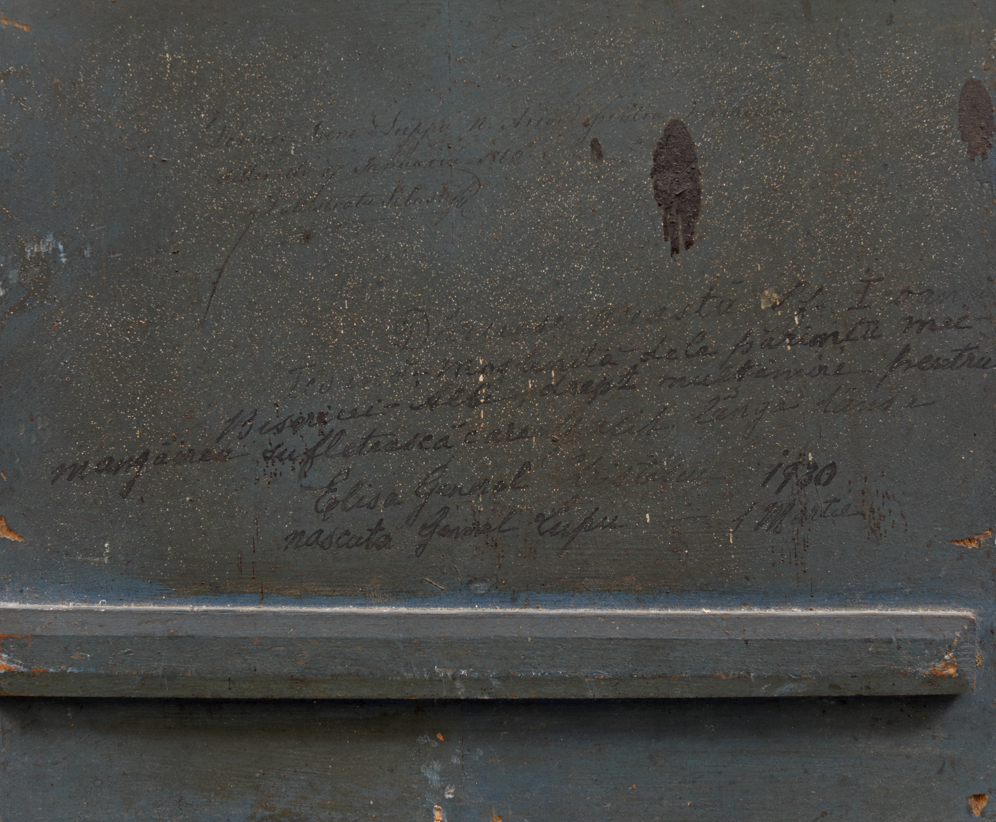 Conform inscripțiilor de pe verso-ul icoanei, pentru prima dată în cazul unei licitații publice de profil, putem reconstitui istoria unui icoane din momentul în care a fost realizată și a părăsit atelierul pictorului până în prezent. Așadar, la 17 ianuarie 1860 pictorul Gheorghe Tattarescu a semnat icoana, urmând ca în 27 ianuarie aceasta să fie oferită de către Calistrat Sebas, doamnei Irene Luppu, născută Arion. La data de 1 martie 1930, Elisa general Cristescu, născută general Lupu, oferă icoana Bisericii Albe din Târgșoru Vechi, județul Prahova. Conform celor redate de actualul proprietar, în anii 1970 parohul bisericii, cel mai probabil, a oferit-o doctorului Georgescu Constantin care a activat in județul Prahova, drept mulțumire pentru serviciile medicale oferite. În 1982 piesa a fost moștenită de actualii proprietari.
