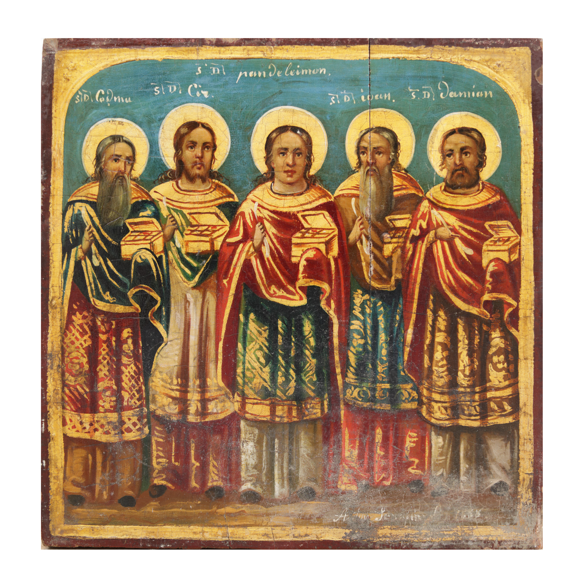 104. ”Sfinţii Doctori fără de arginţi Cosma, Chir, Pantelimon, Ioan și Damian”, piesă rară, de colecție