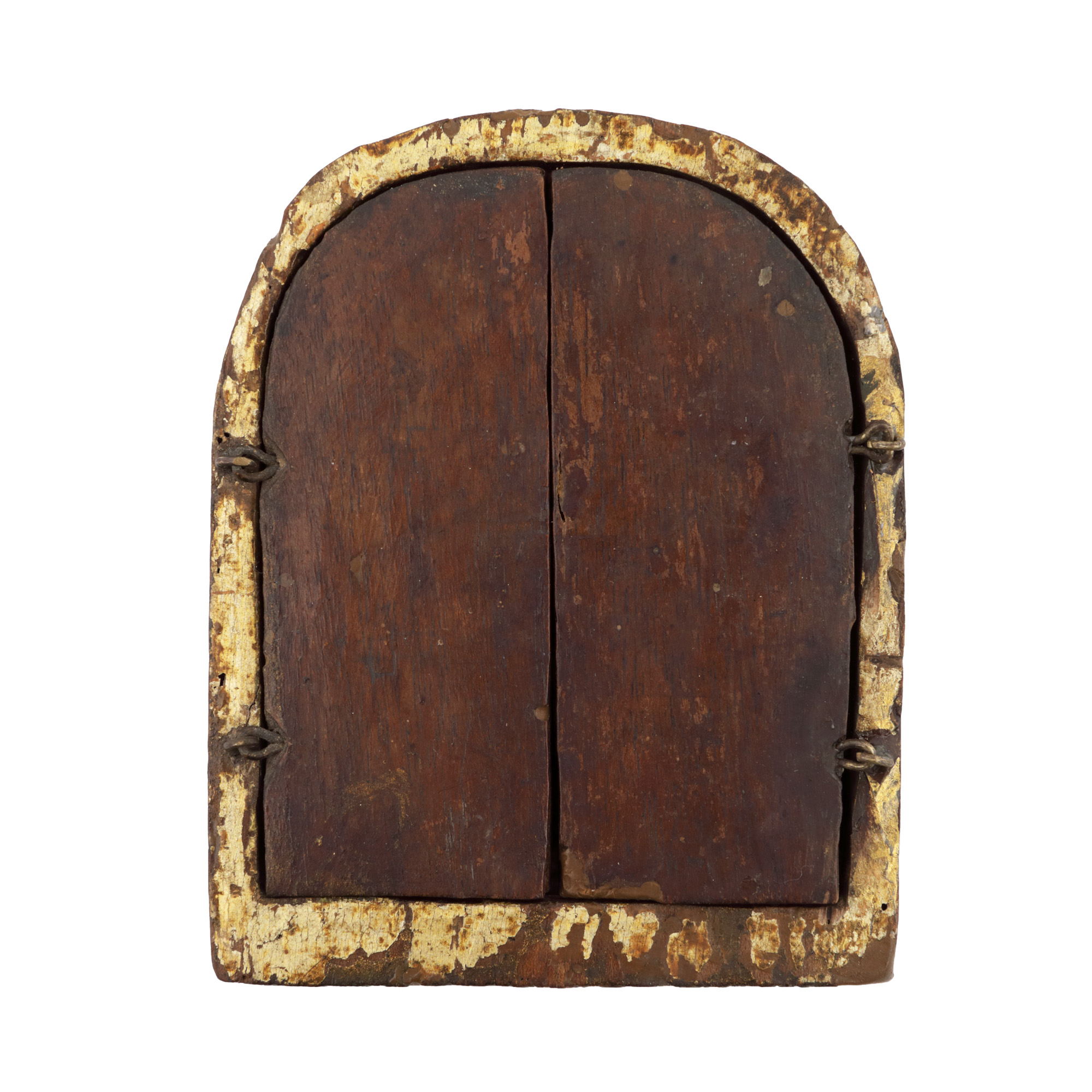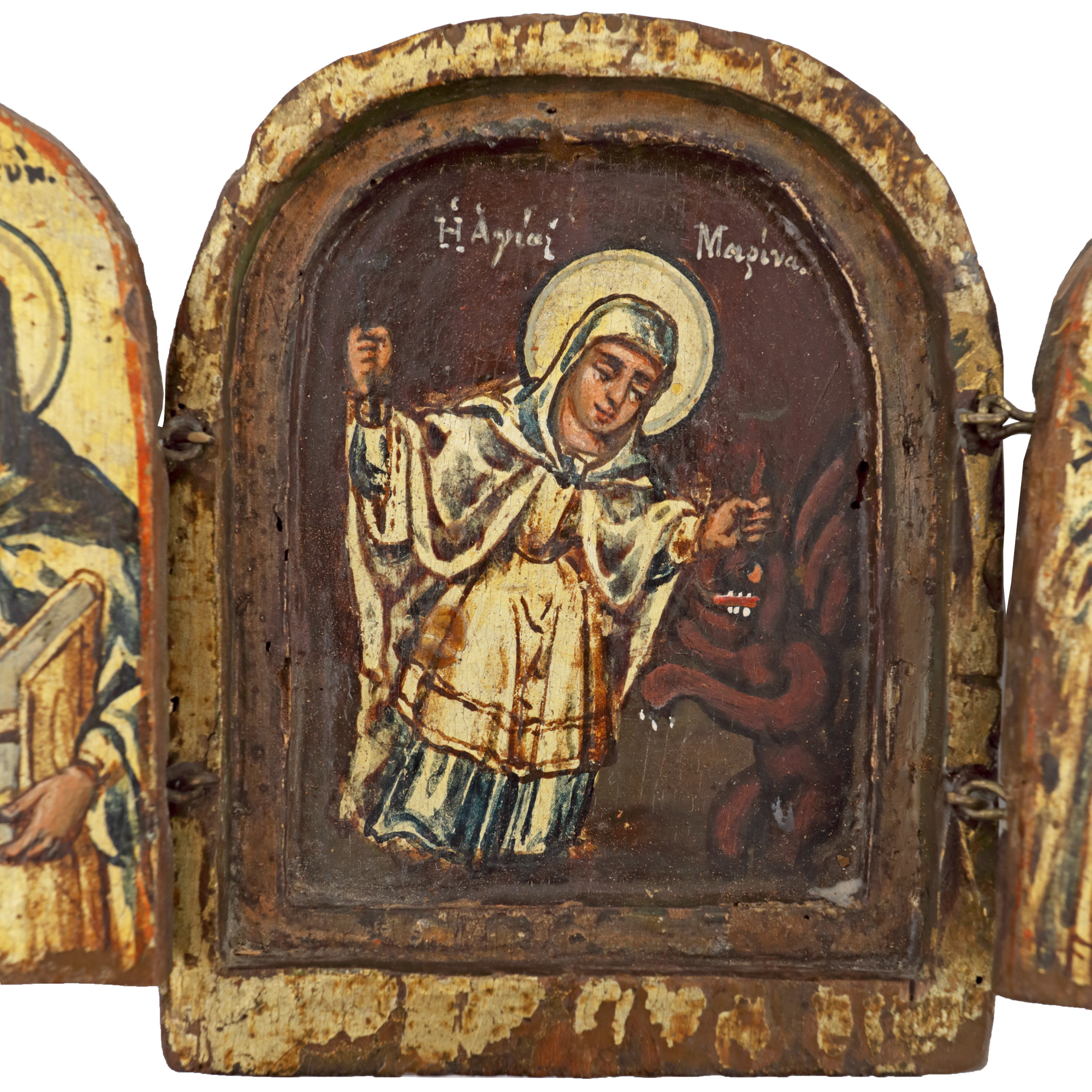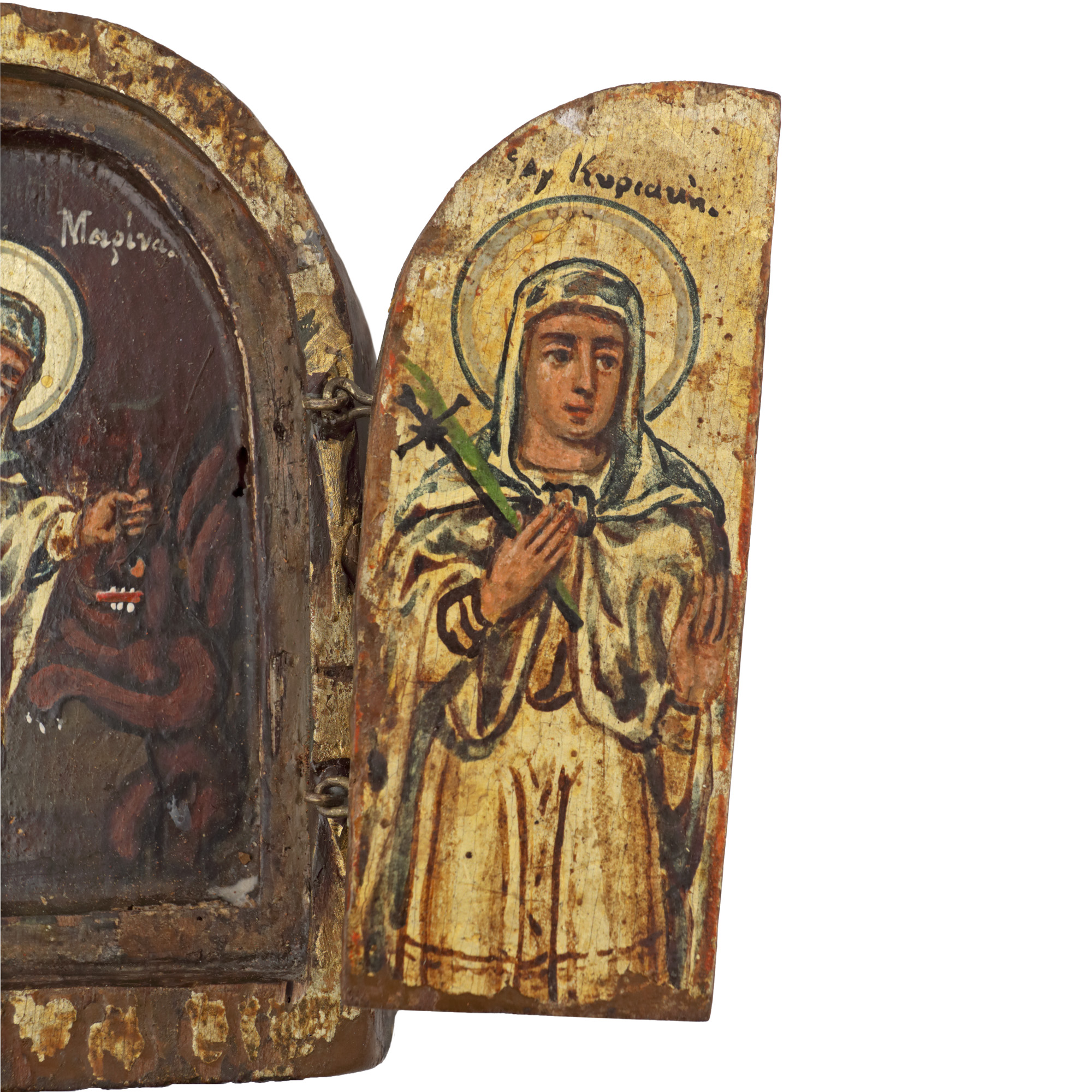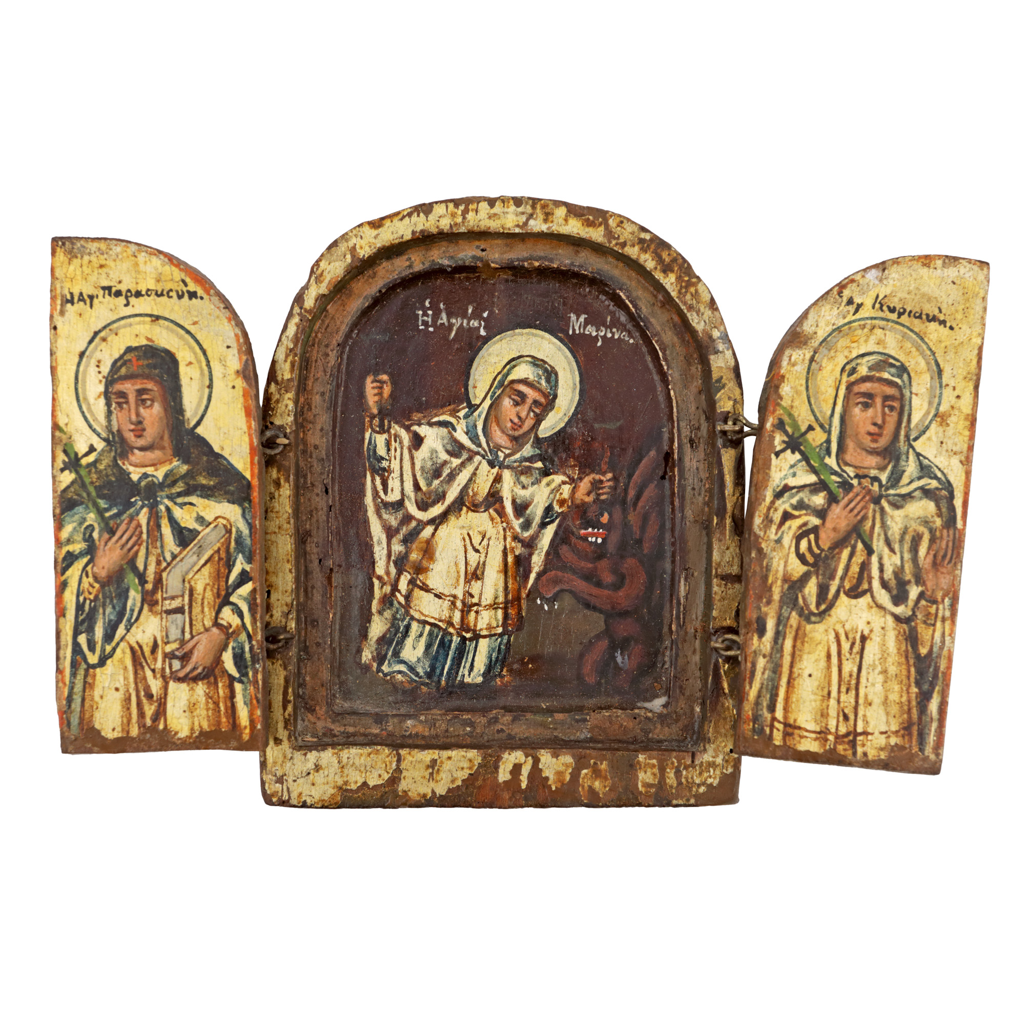 137. Triptic de călătorie, ”Sfânta Marina, Sfânta Paraschiva și Kiriachi (Sfânta Duminică)”, școală grecească, începutul sec. XIX