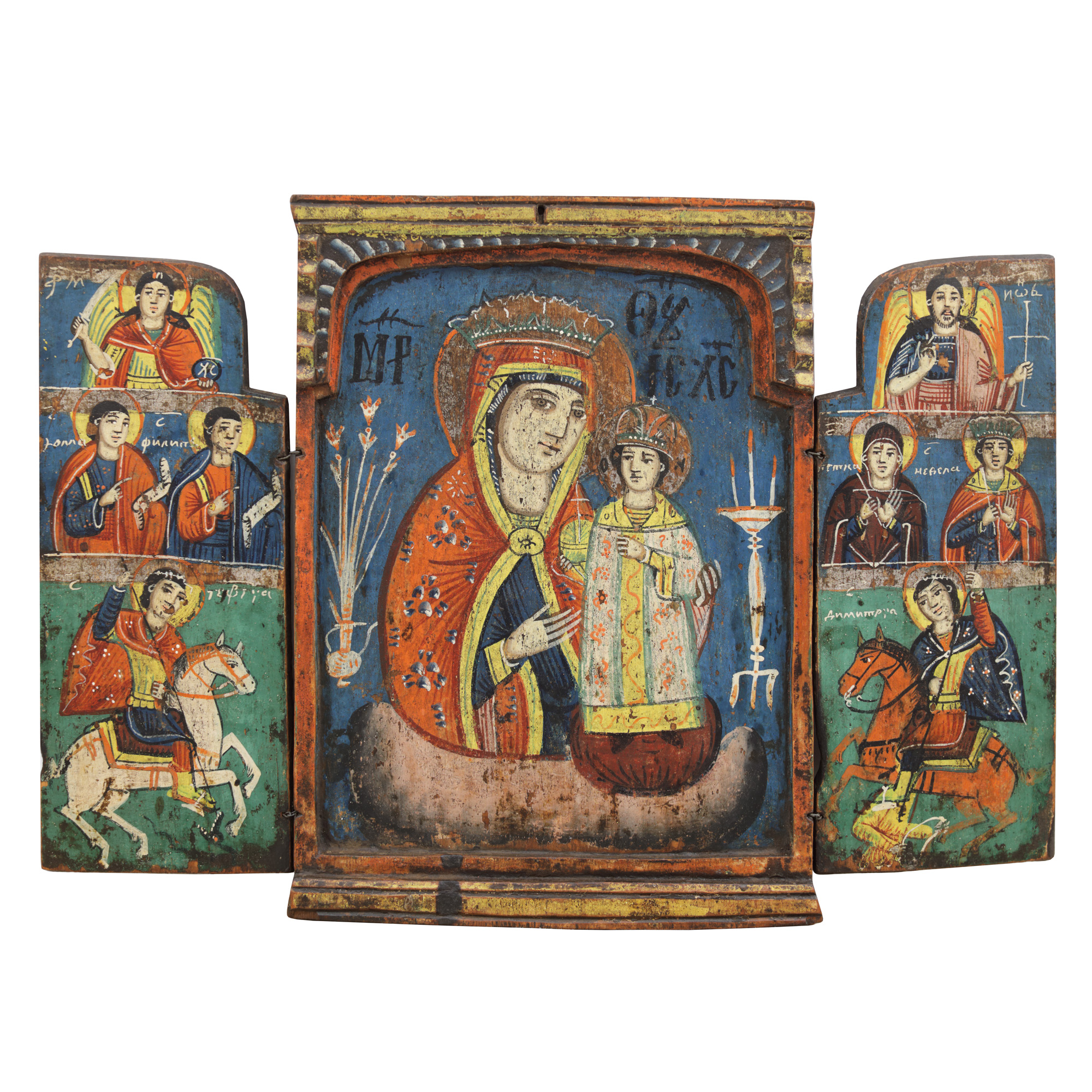 139. Triptic, "Maica Domnului cu Pruncul", școală sud-dunăreană de influență grecească, începutul sec. XIX