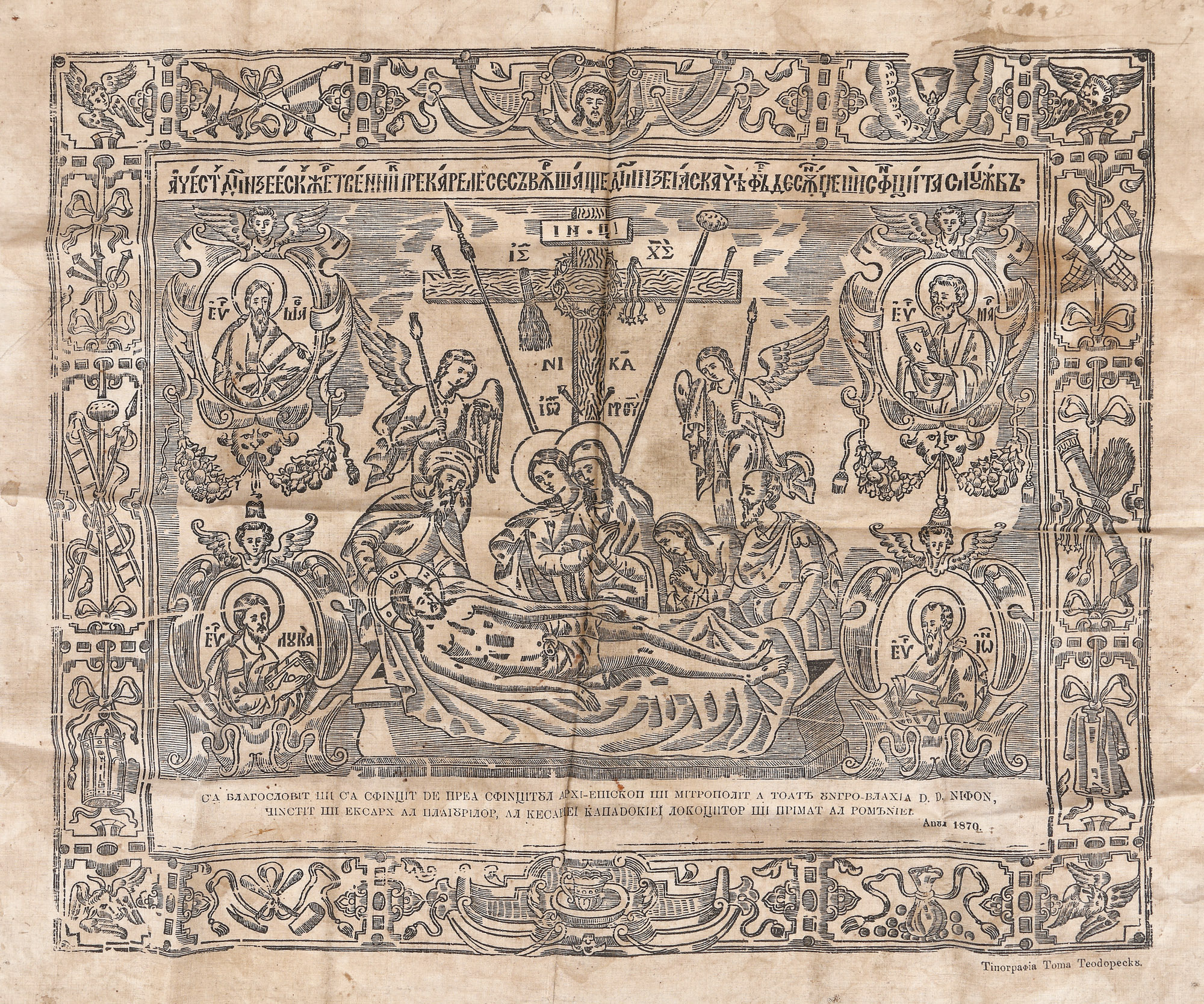 67. Antimis, ”Plângerea lui Iisus”, școală românească, 1870, piesă rară