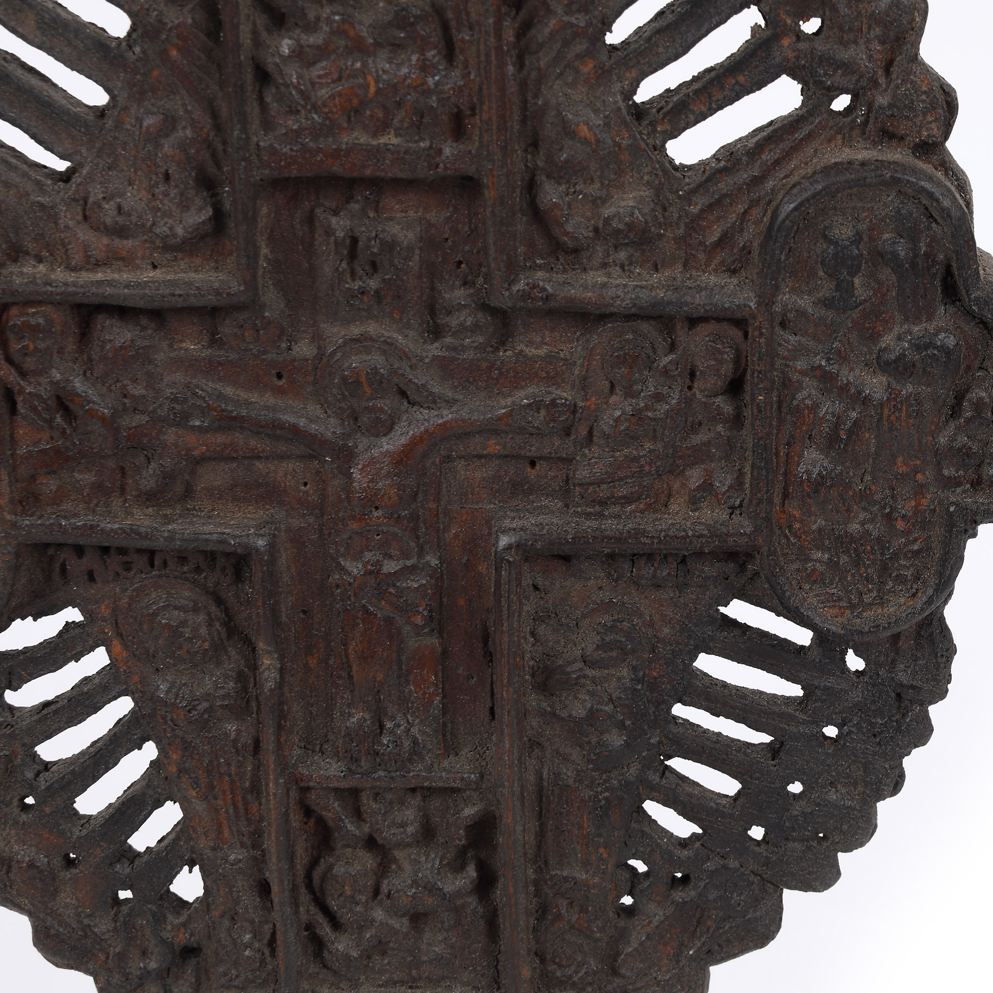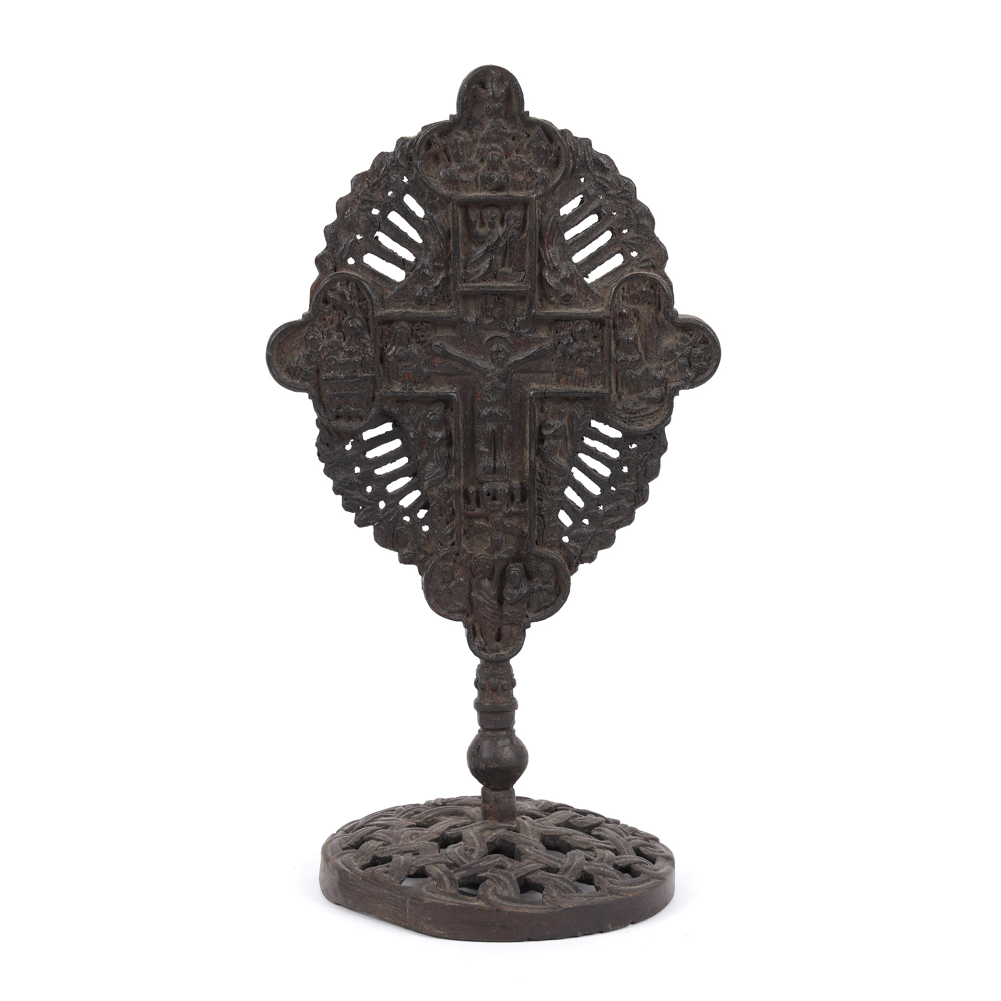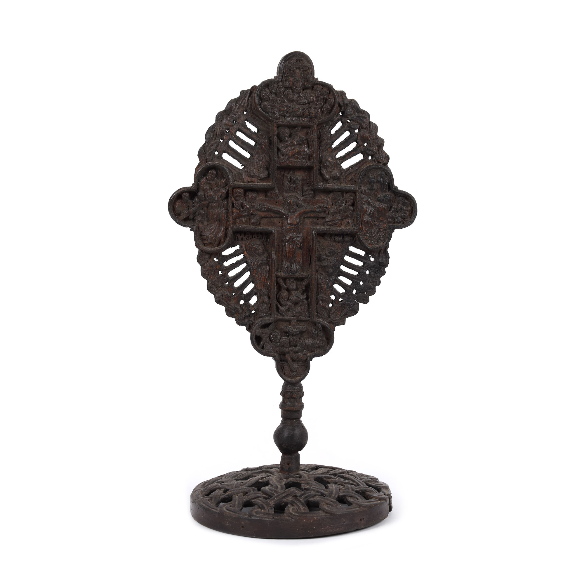 115. Cruce de masă, cu scena ”Răstignirea Domnului", școală românească, sfârșitul sec. XVIII, piesă rară, de colecție