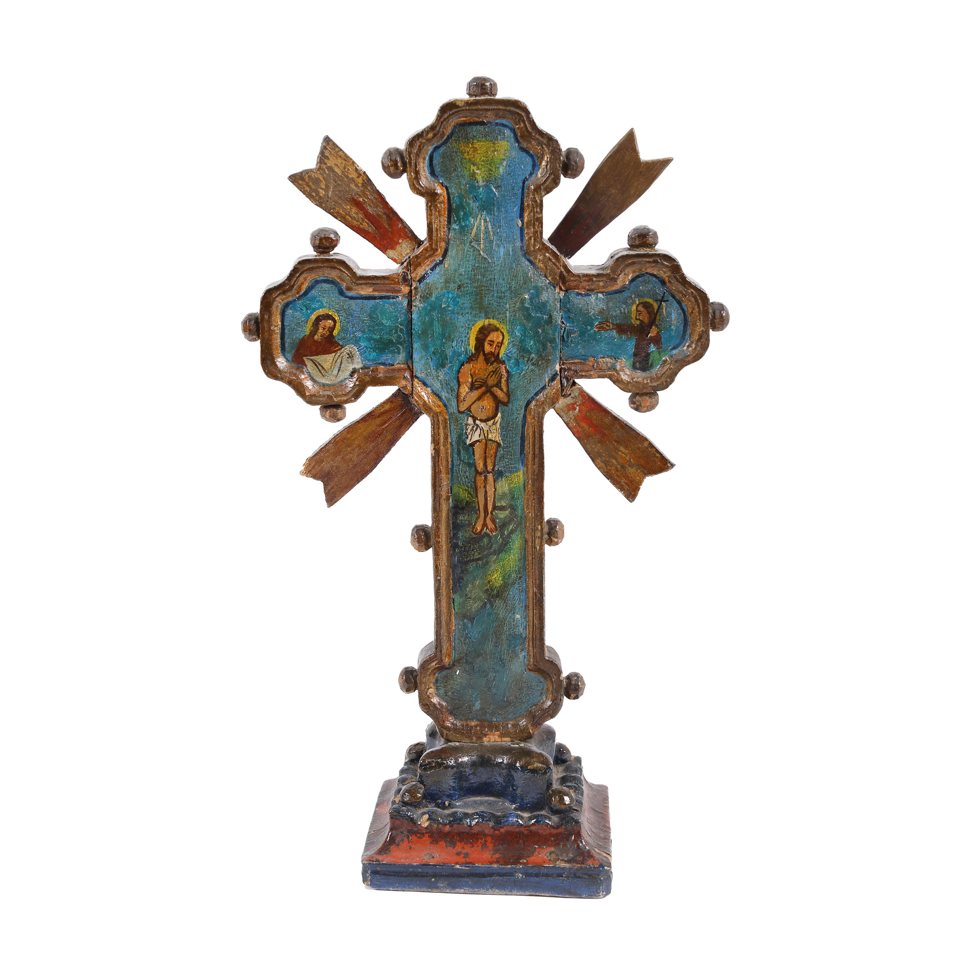 113. Cruce de masă, cu scenele ”Răstignirea" și "Botezul Domnului”, școală românească, sec. XIX