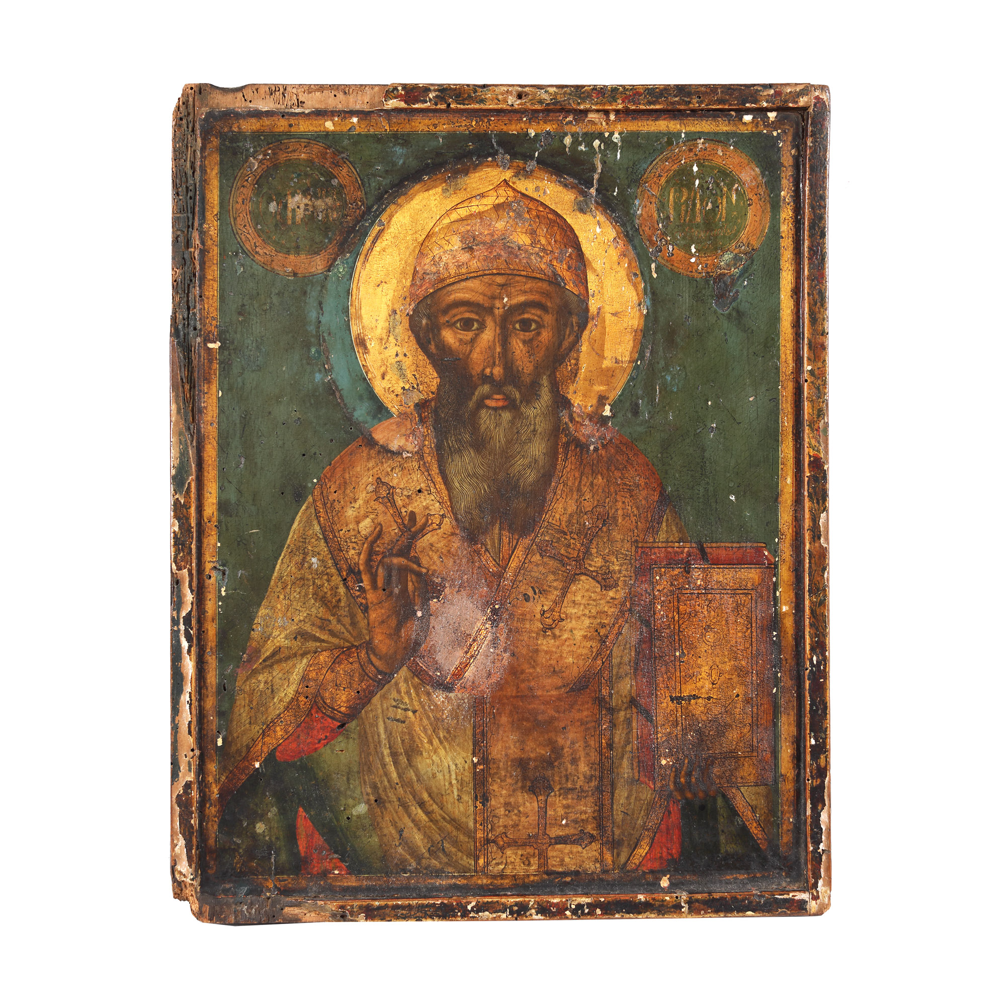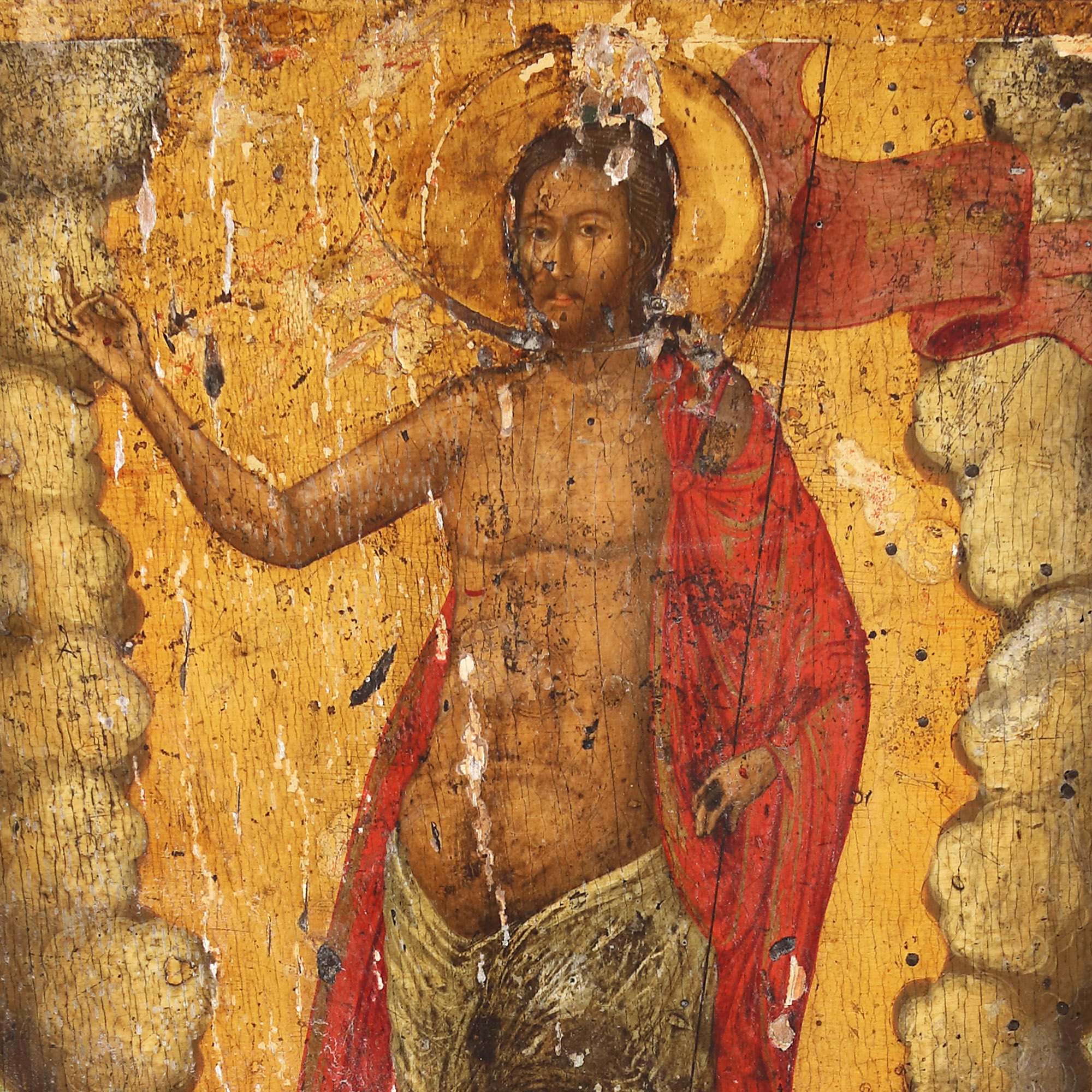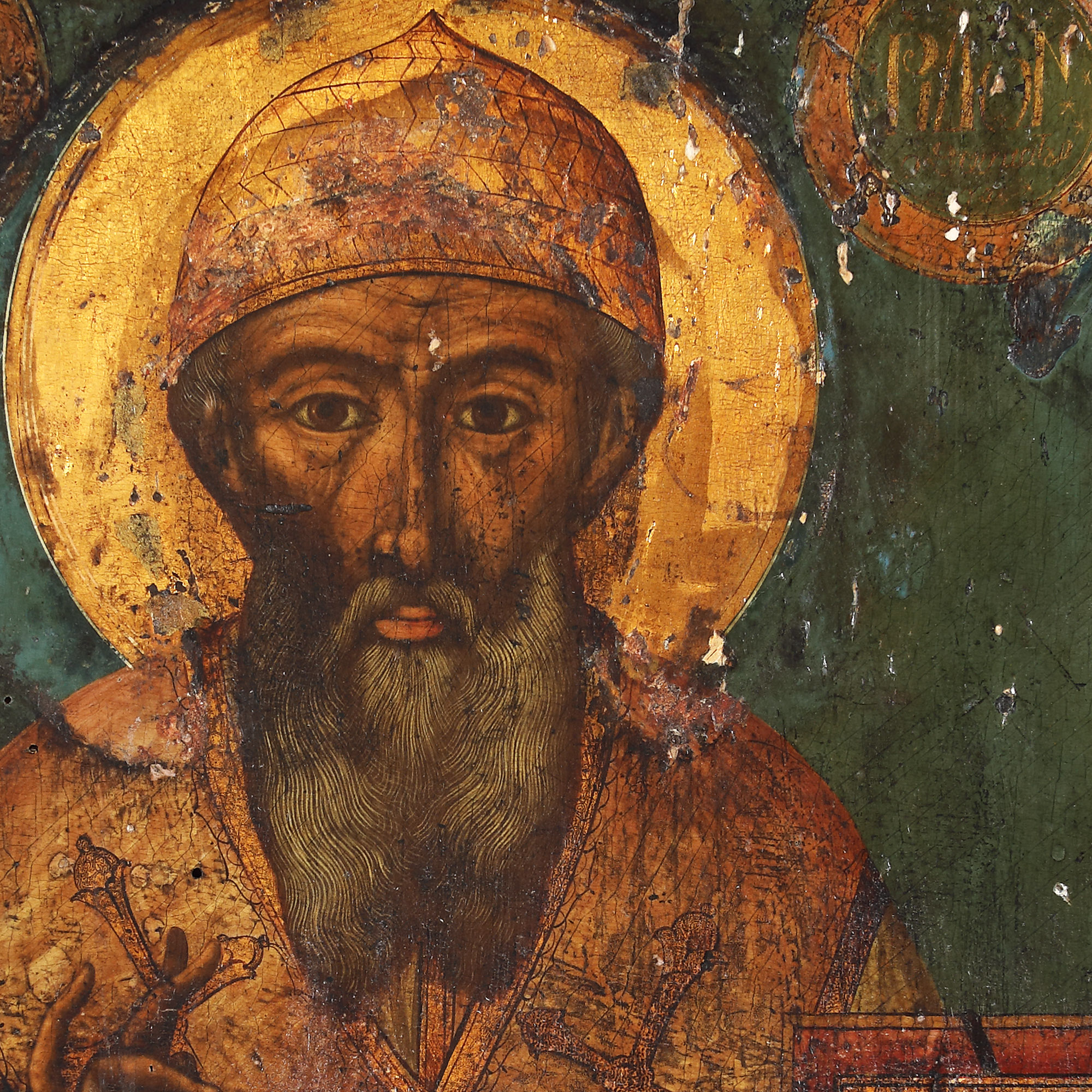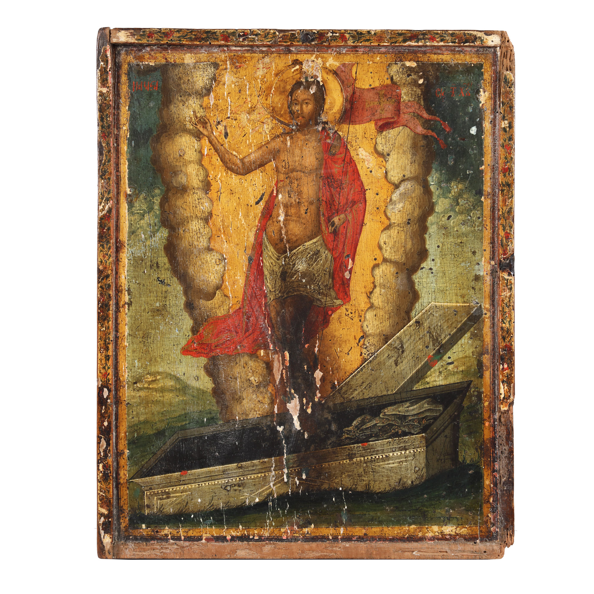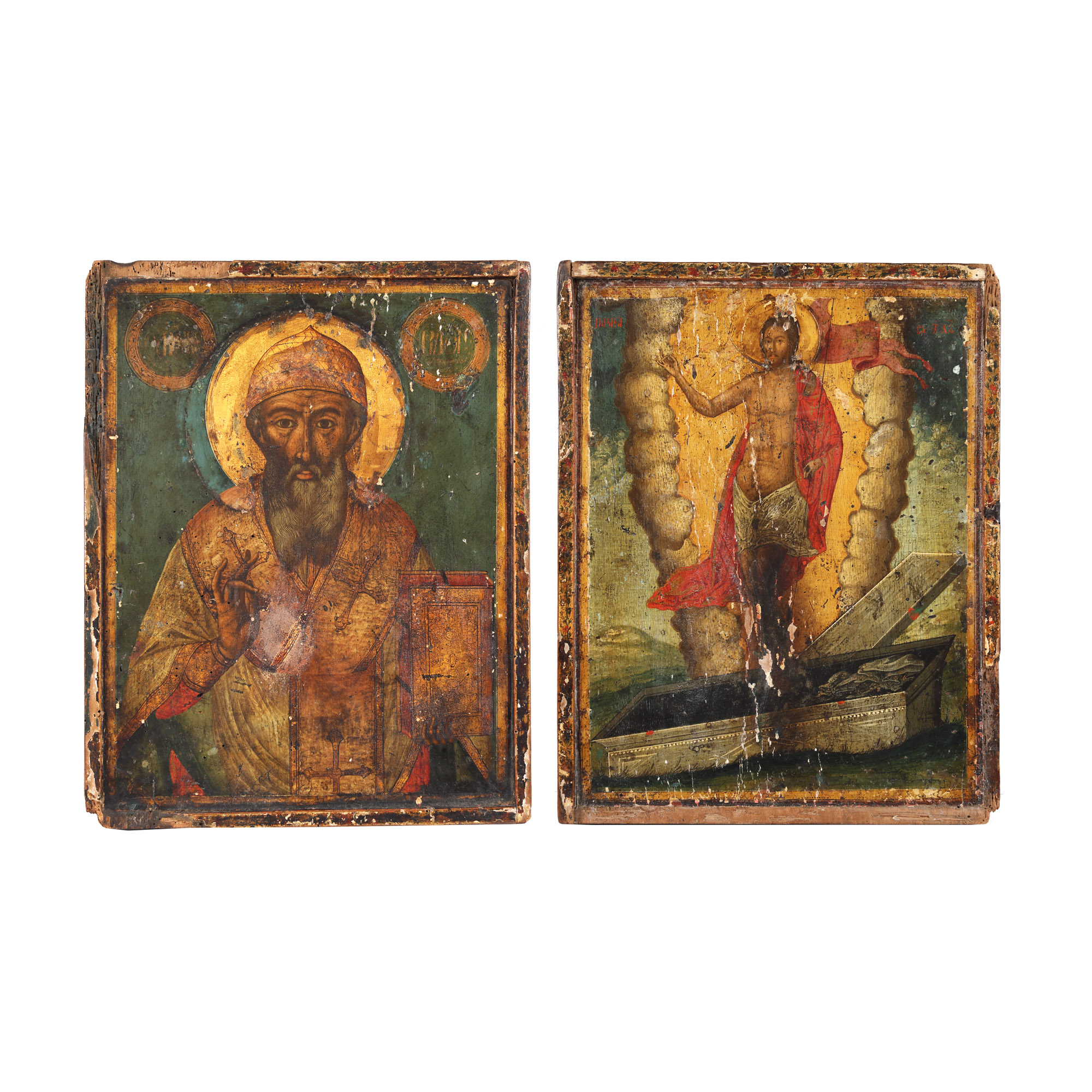 154. Icoană dublă pe lemn, ”Învierea Domnului” și ”Sfântul Spiridon”, școală grecească, a doua jumătate a sec. XVIII, piesă rară, de colecție