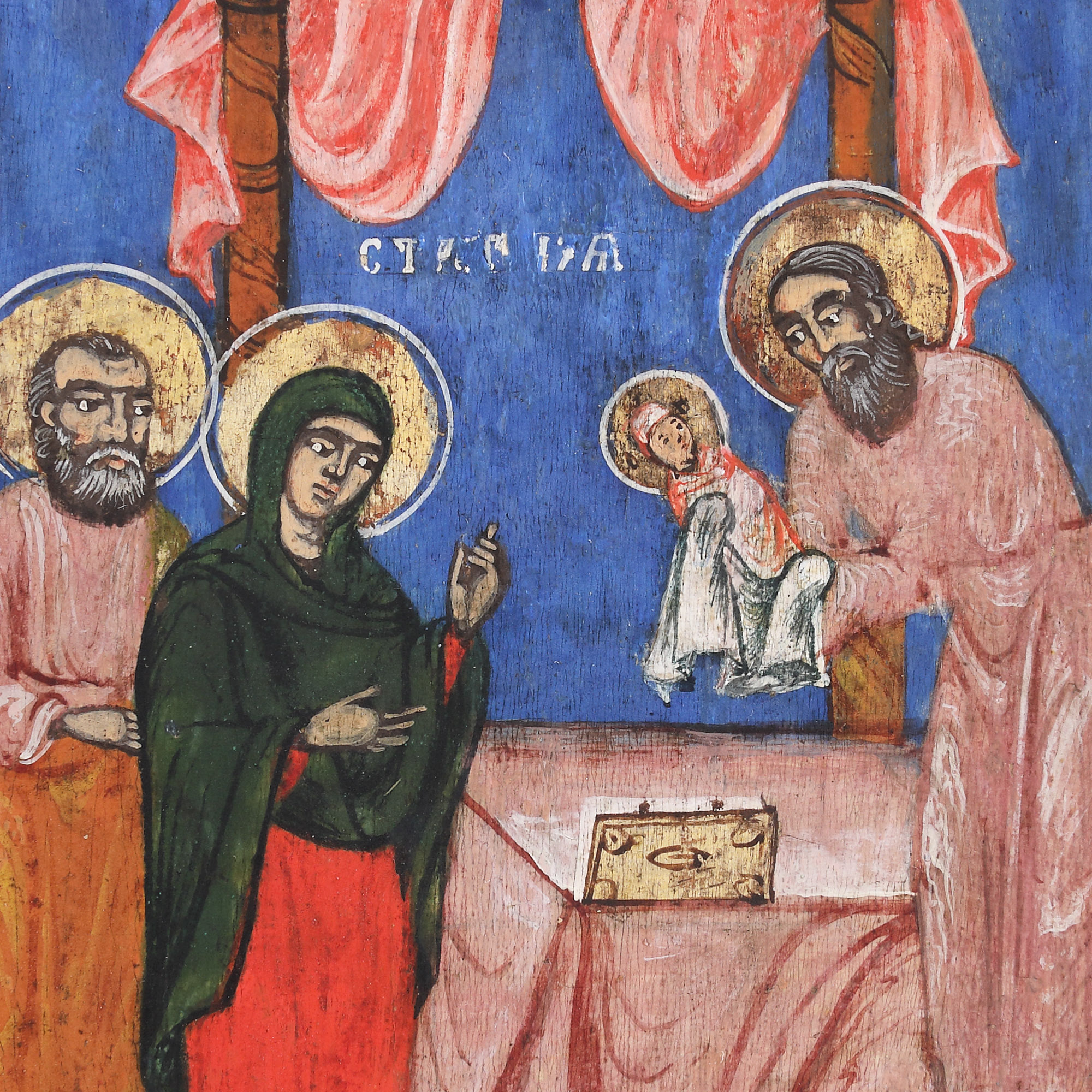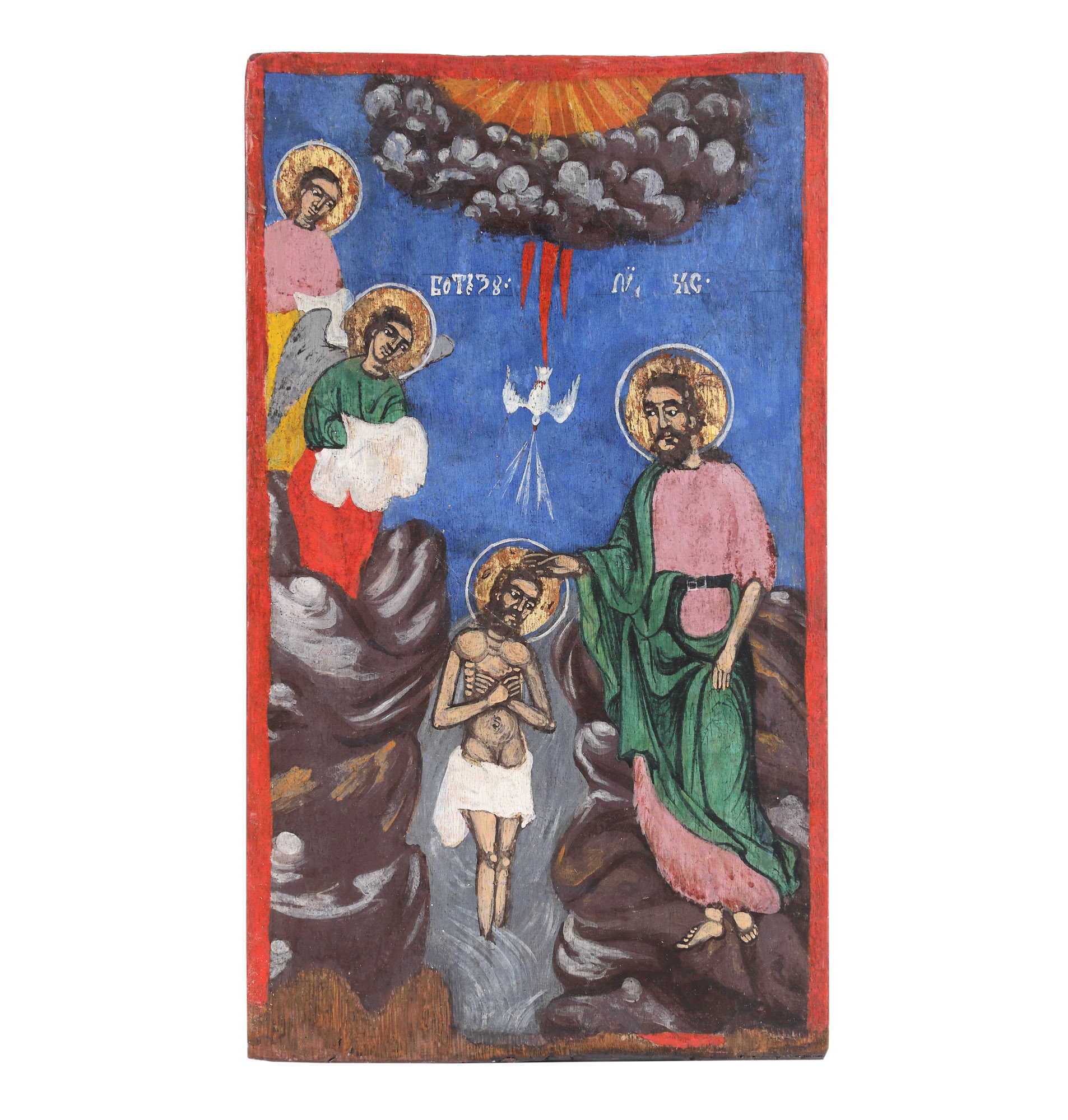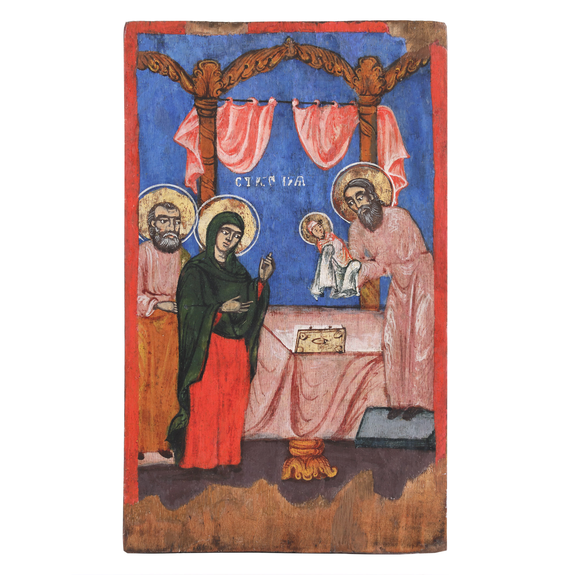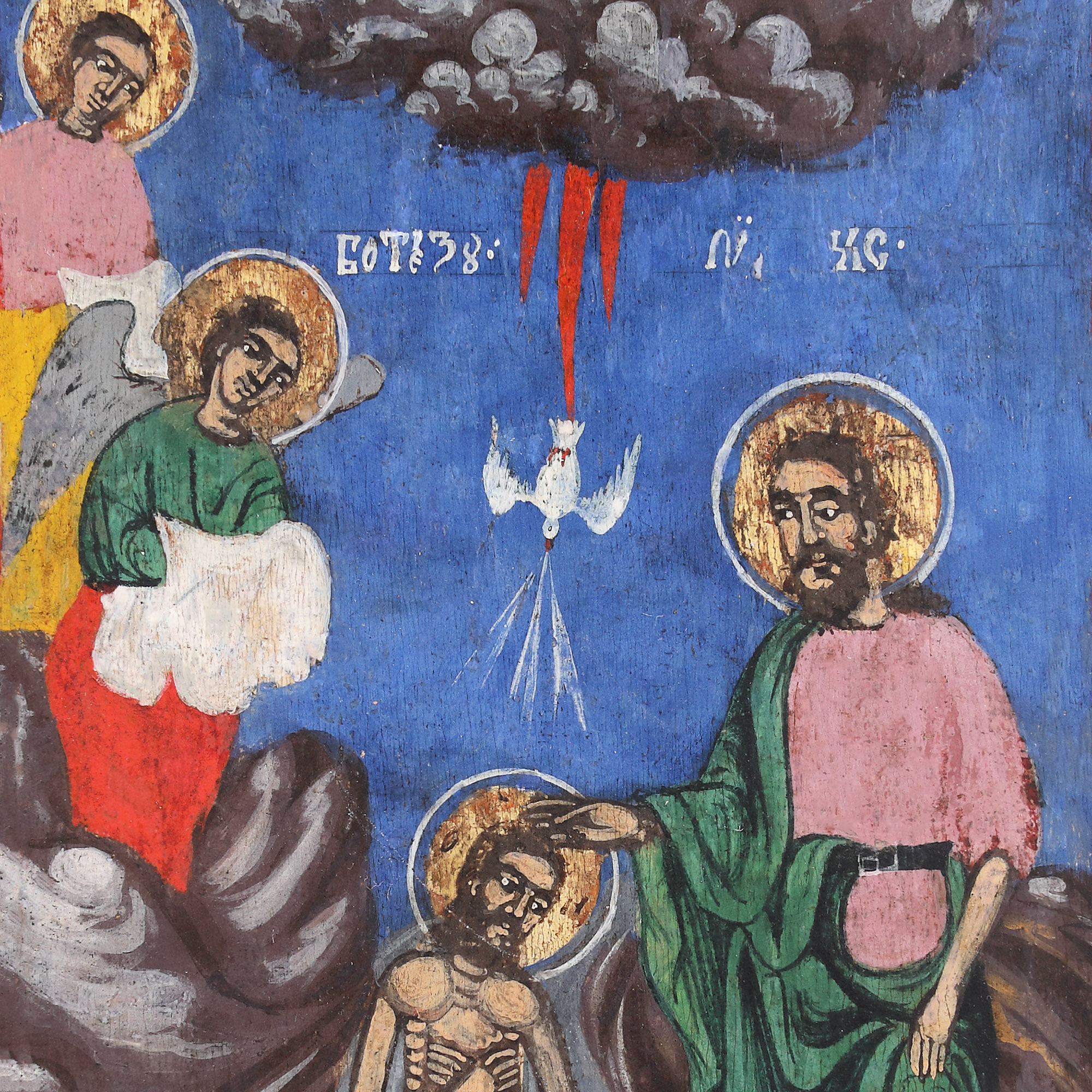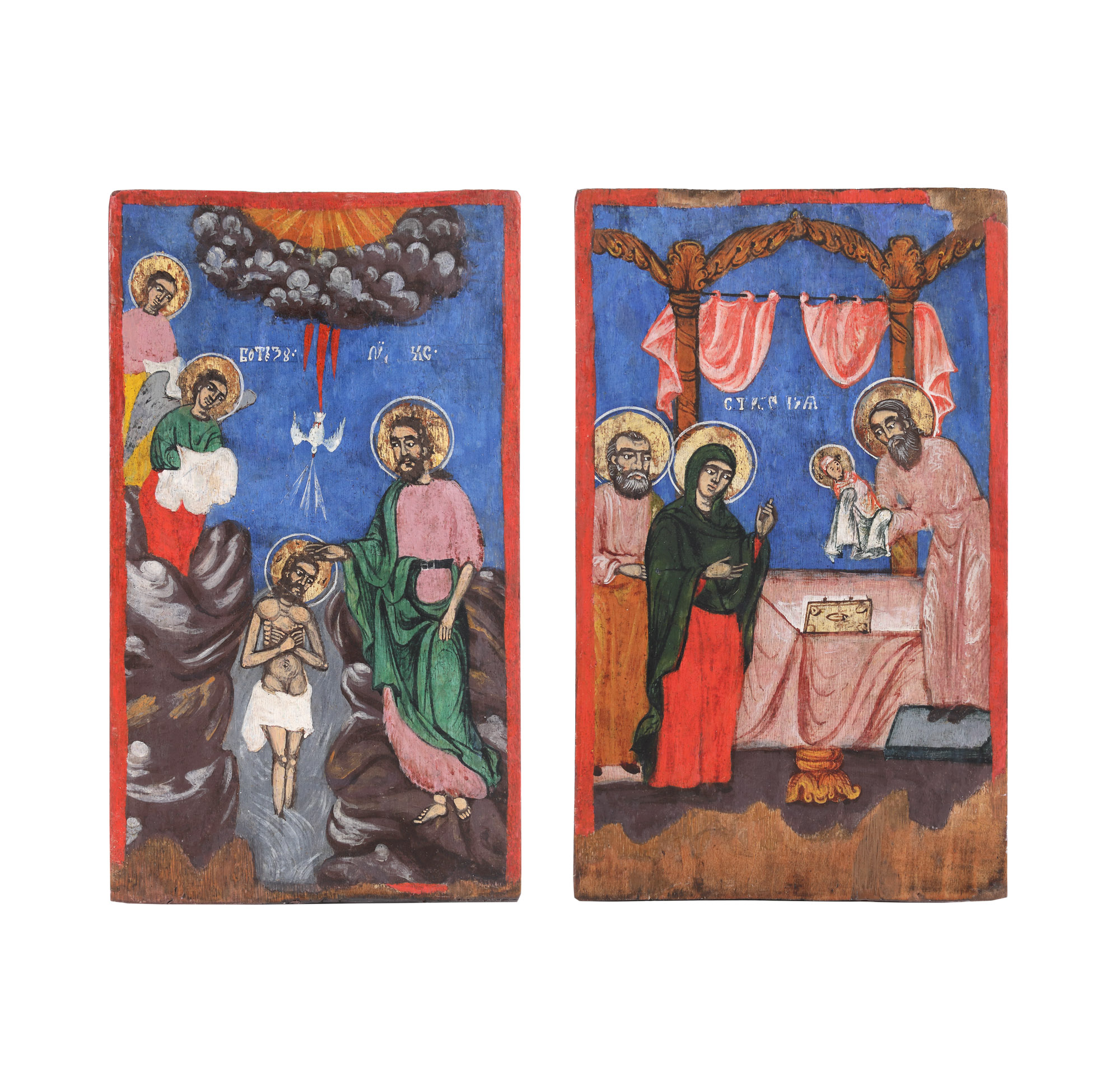 164. Icoană dublă prăznicar, "Botezul Domnului” și ”Prezentarea la Templu a Domnului”, școală românească de tranziție, începutul sec. XIX