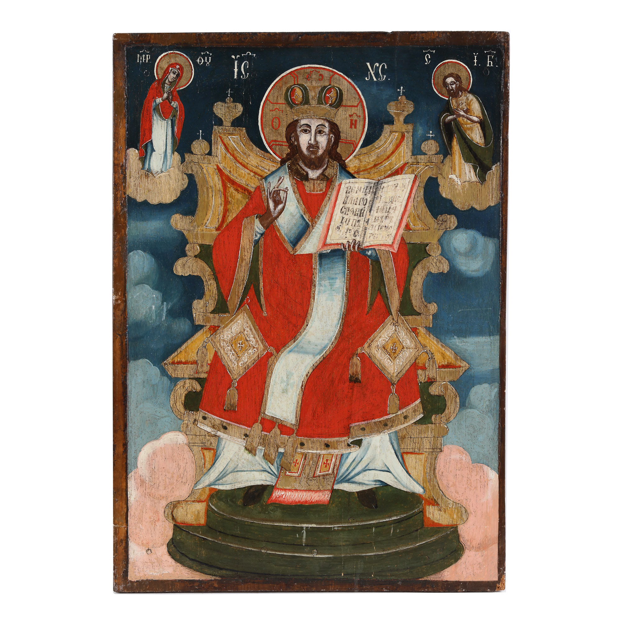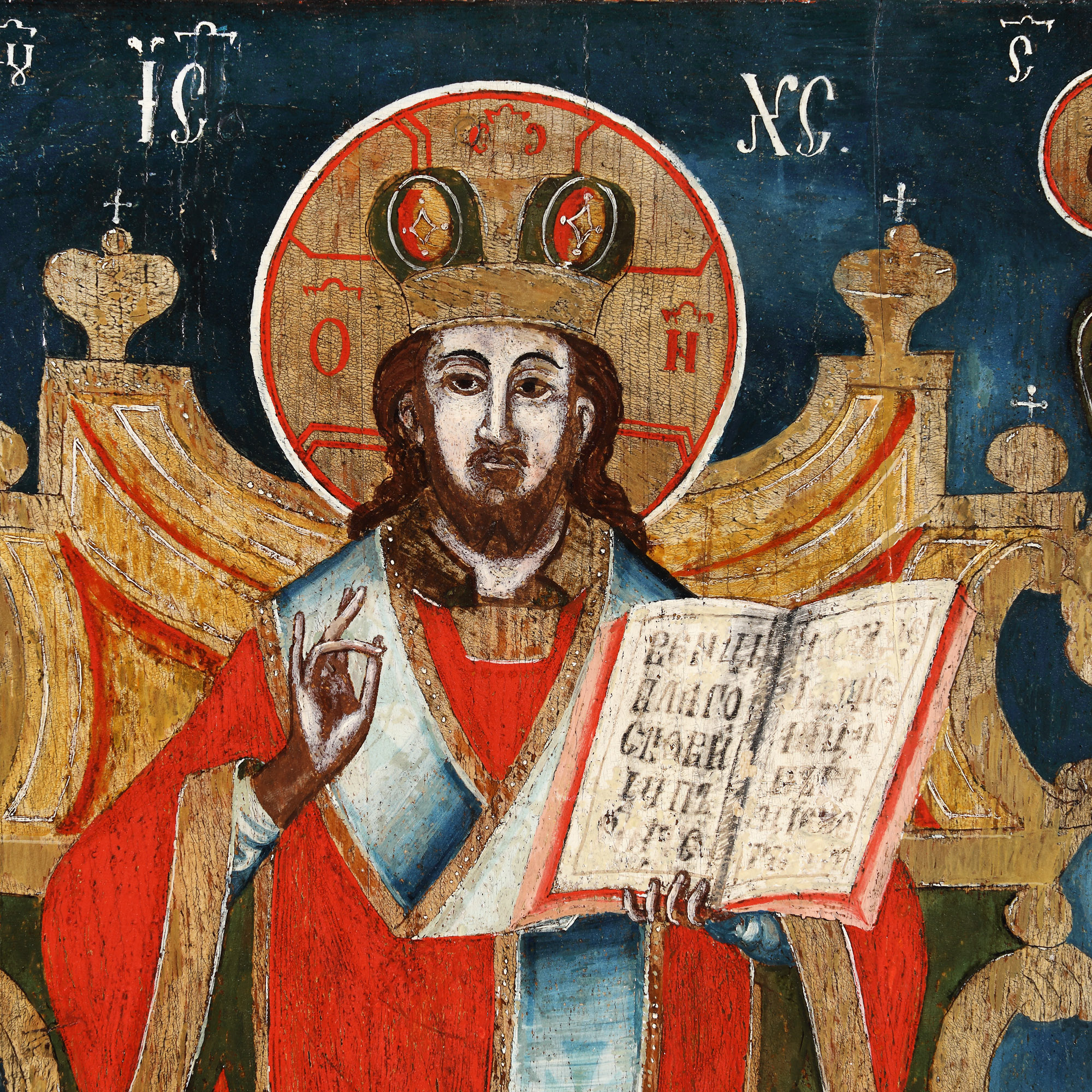 134. Icoană împărătească pe lemn, ”Iisus Hristos Împărat și Mare Arhiereu”, școală românească, începutul sec. XIX