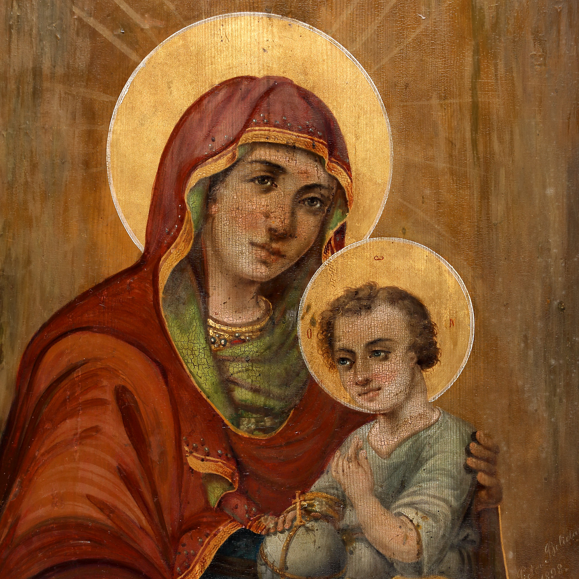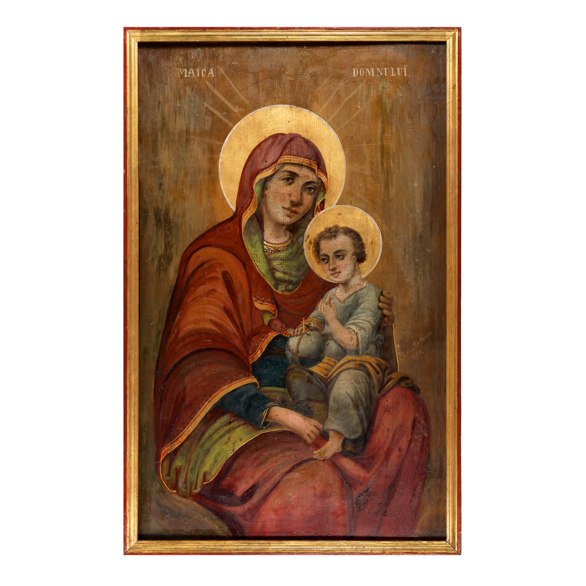 161. Icoană împărătească pe lemn, ”Maica Domnului cu Pruncul (Hodighitria)”, zugrav [Dimitrie] Belizarie, 1898