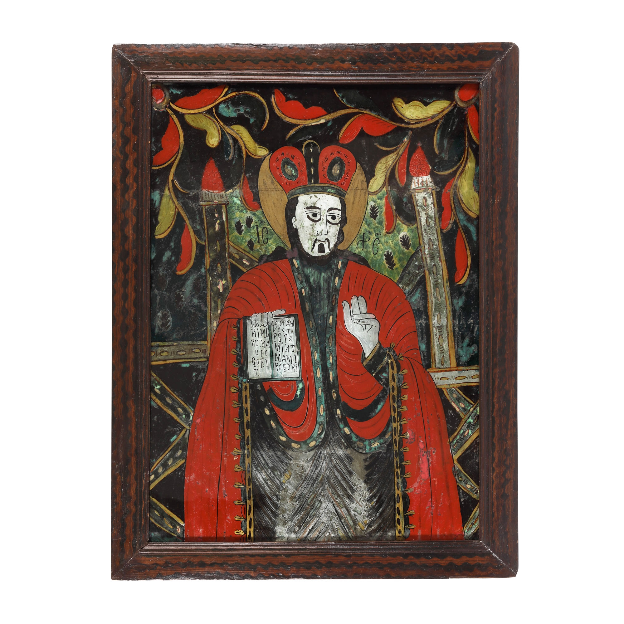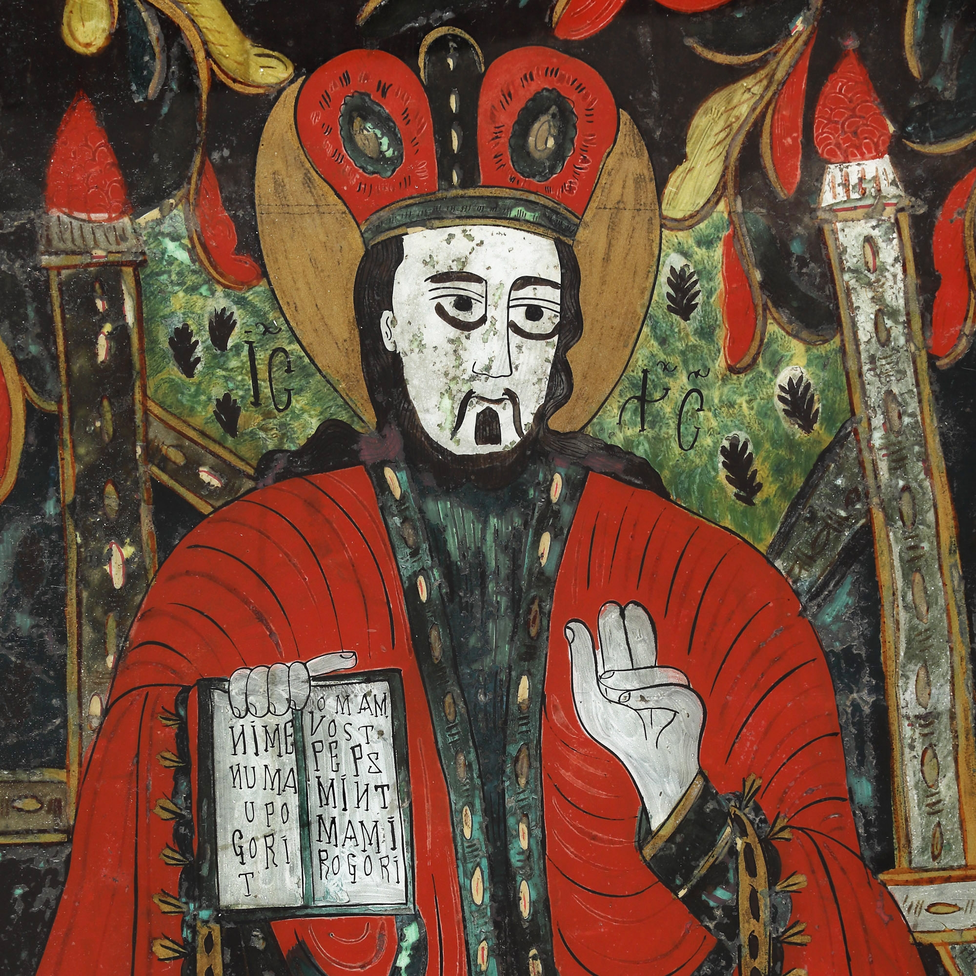 93. Icoană pe glajă, "Iisus Pantocrator", atelier din Gherla, a doua jumătate a sec. XIX