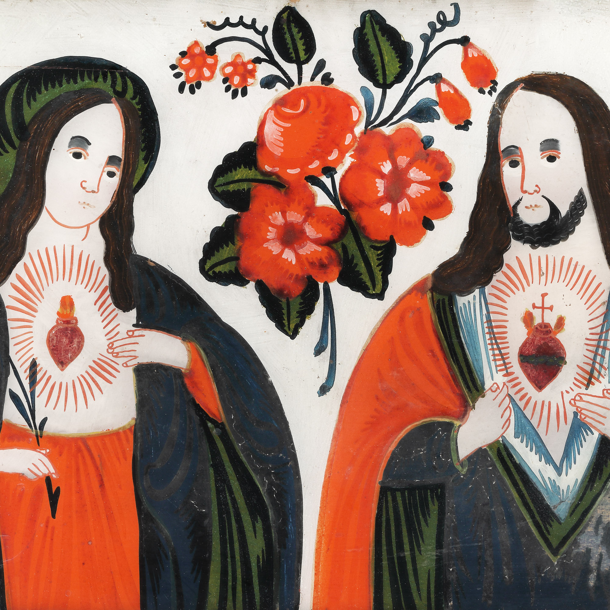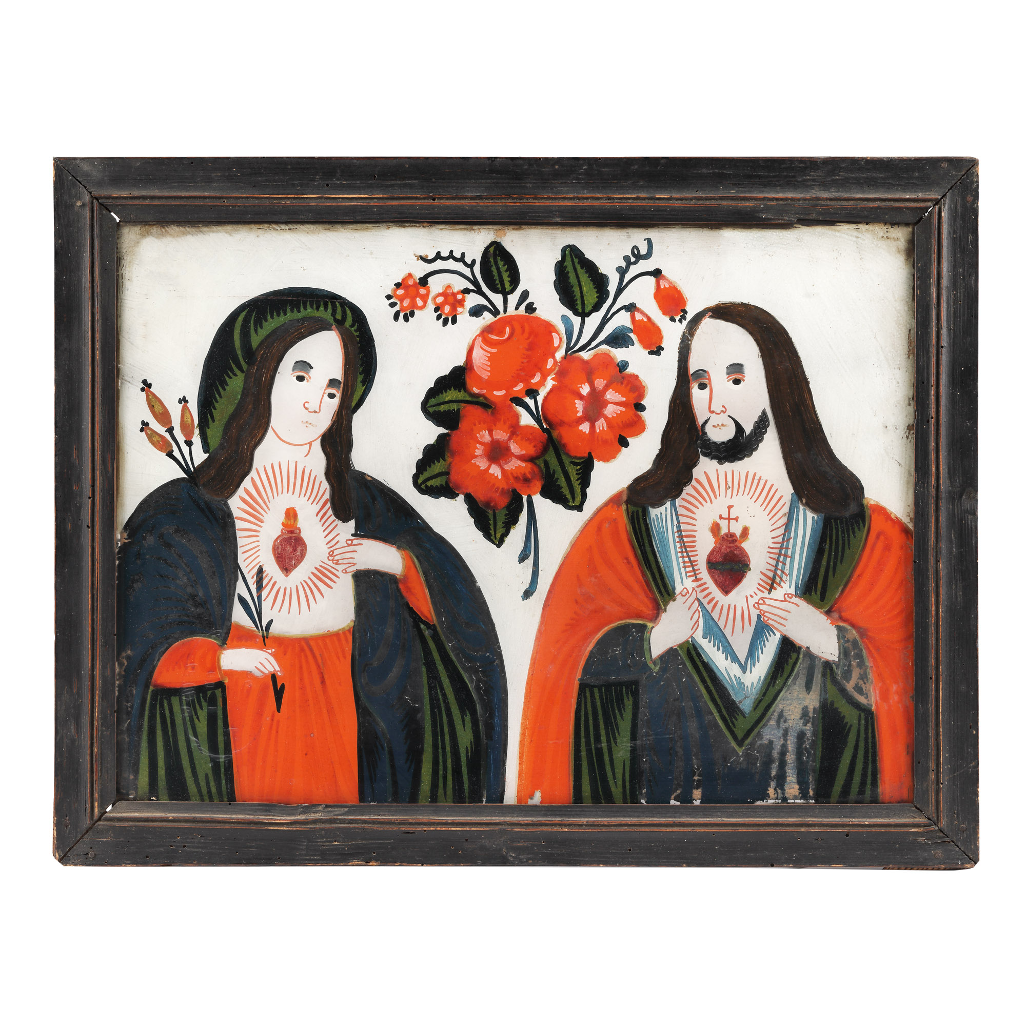 tempera pe glajă, ramă băițuită, cu șforț