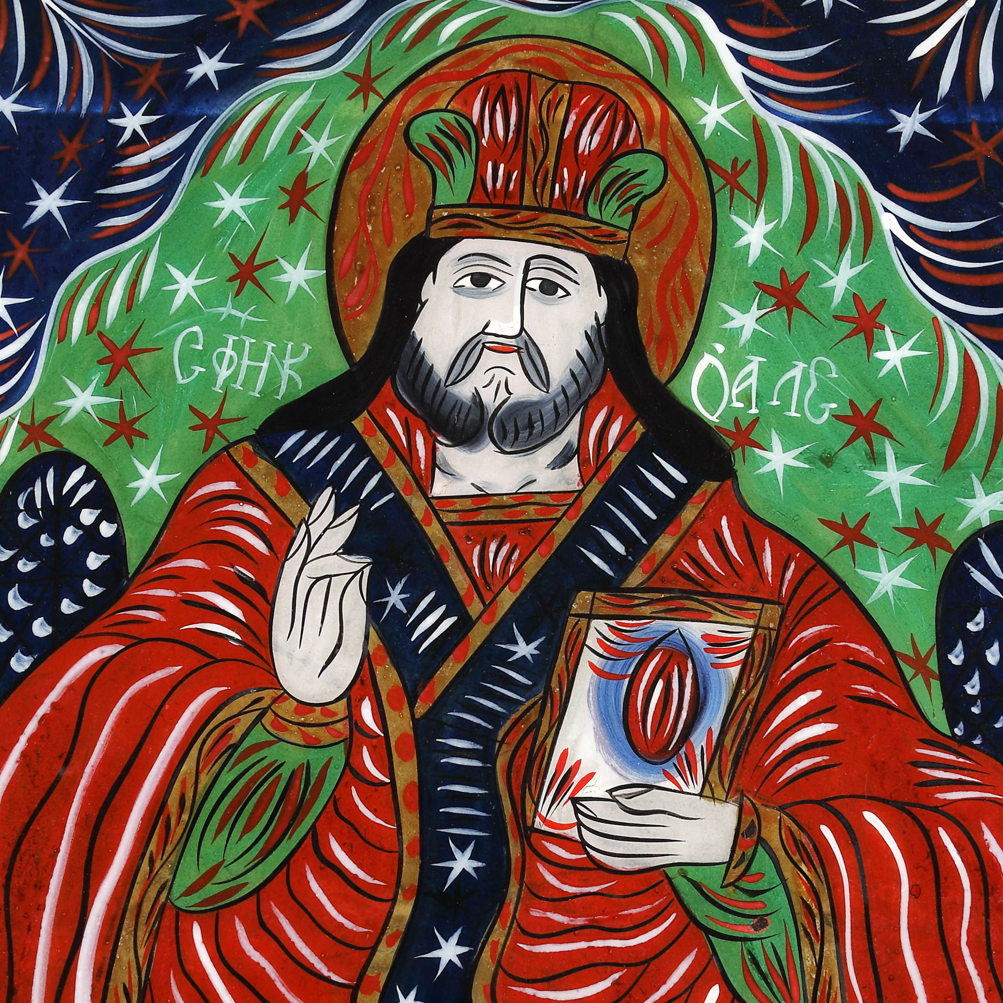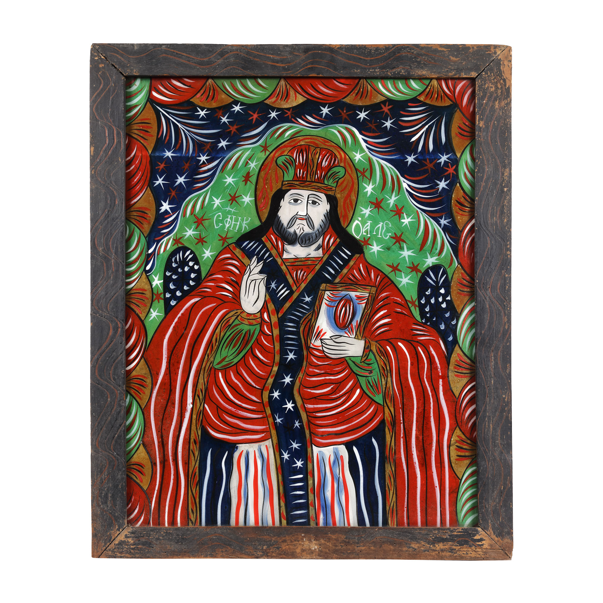 102. Icoană pe glajă, "Sfântul Nicolae", atribuit zugrav Ana Deji, Făgăraș, sfârşitul sec. XIX