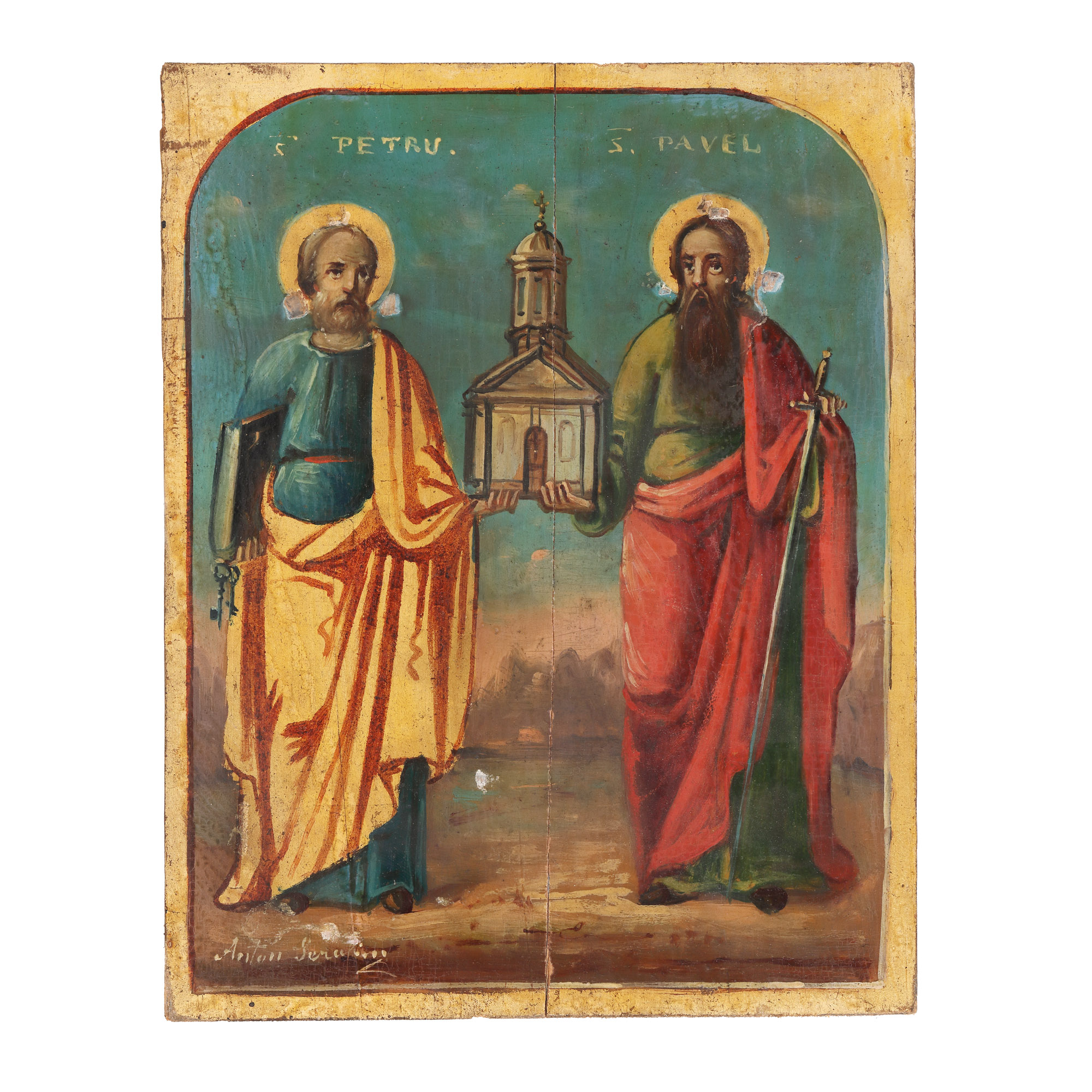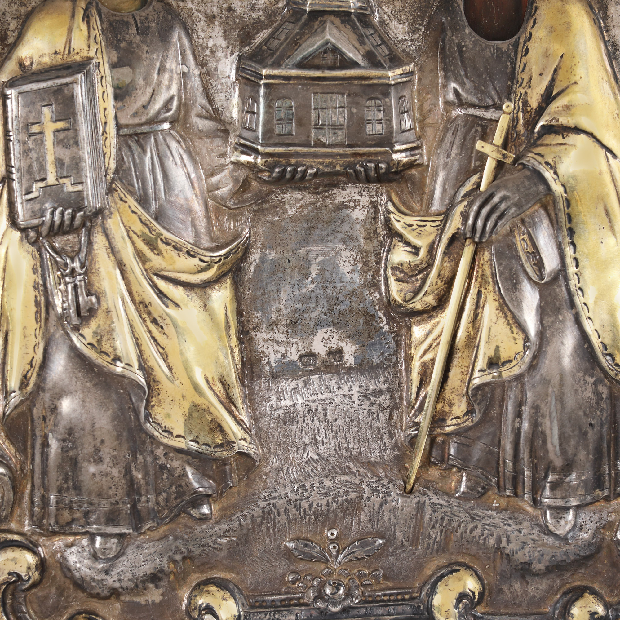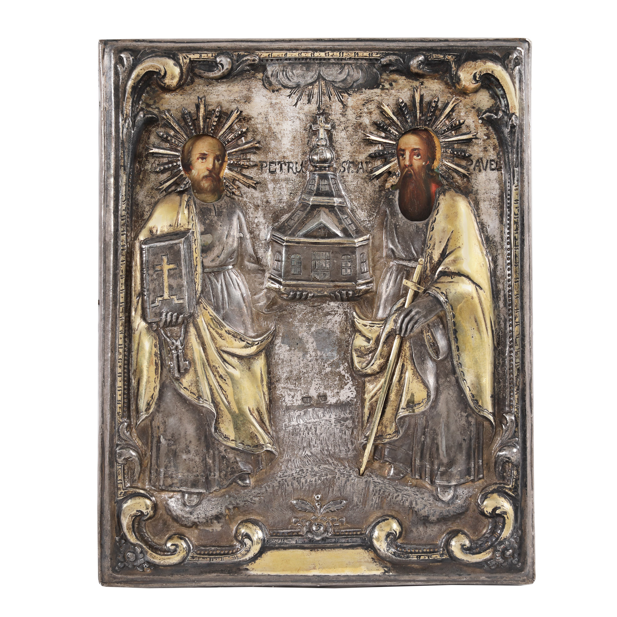 63. Icoană pe lemn, cu ferecătură din argint, ”Sfinții Apostoli Petru și Pavel”, atelier românesc, 1880-1890